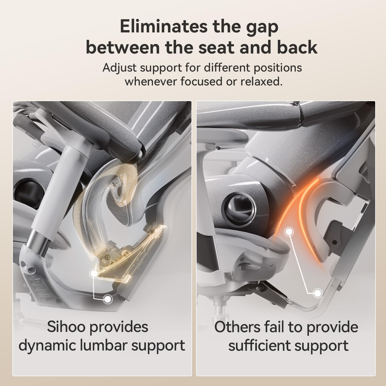 - 【Innovative Ergonomic Chair】SIHOO's latest office chair has been developed using the latest technology to provide comfortable sitting while maintaining the correct posture for a healthy lifestyle. The ergonomic chair features an automatically adjustable 3D headrest, automatically adjustable lumbar support, linked 3D armrests, intelligent gravity structure and automatic adjustment. Following the concept of a 'chair that sits on your body', the soft backrest and breathable mesh seat design provide a comfortable sitting experience, even after long hours of sitting.