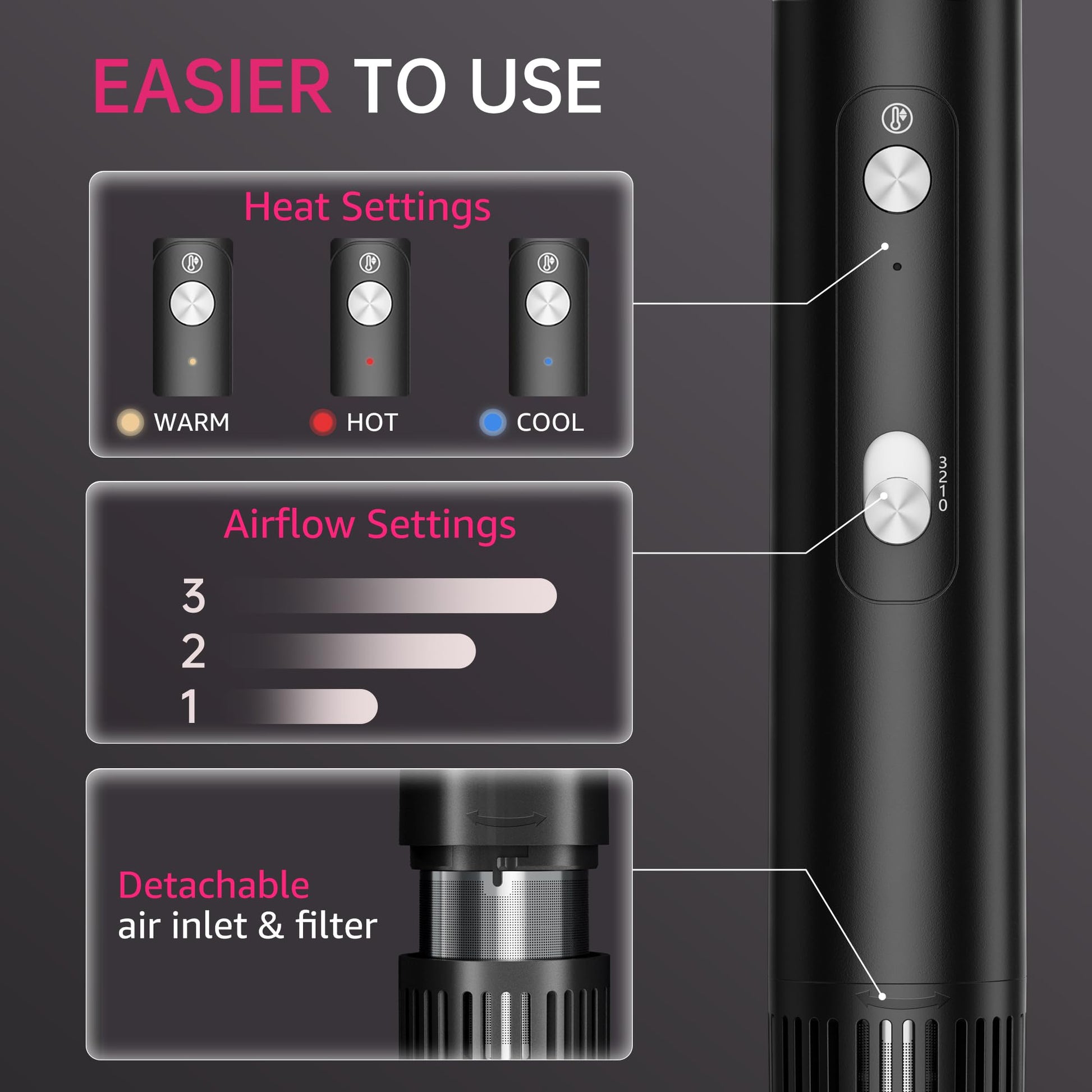 - High-Speed Drying Technology: Featuring a high-speed brushless motor that reaches110,000 RPM, this multi-hair styler delivers powerful airflow comparable to that of a brushless blow dryer. The brushless motor design makes it lighter and more powerful than traditional brushed products, resulting in a longer motor lifespan and leaving your hair smooth, shiny, and frizz-free in just minutes.