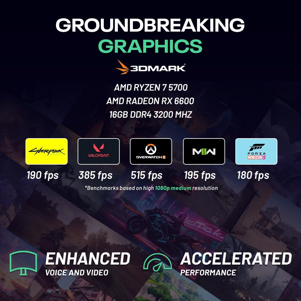 - AMD Radeon RX 6600 8GB GDDR6 Graphics Card (Brand may vary) | 16GB DDR4 RAM 3200 Gaming Memory with Heat Spreader | Windows 11 Home 64-bit