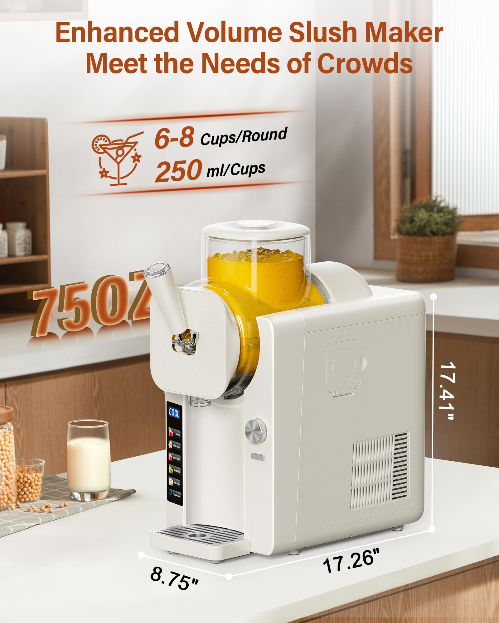 - 🧃 Works with a Variety of Beverages – Customize Your Creations Whether it’s juice, soda, chocolate milk, coffee, or even wine, this machine handles it all. Just pour in your favorite drink, select your desired texture, and enjoy barista-style frozen drinks from the comfort of home. Great for both kids and adults. Tips: The machine supports beverages with 2.8%–16% alcohol content.