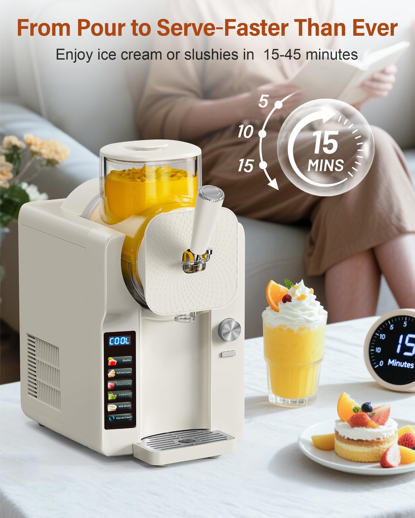 Slush Machine & Ice Cream Maker Machine 2-IN-1, 6 Modes for Smoothies, Milkshakes, Cocktails, Margarita, and Ice Cream, Double-Layer Tank, With Ice Cream Cone Holder, Self-Cleaning, For Home Use