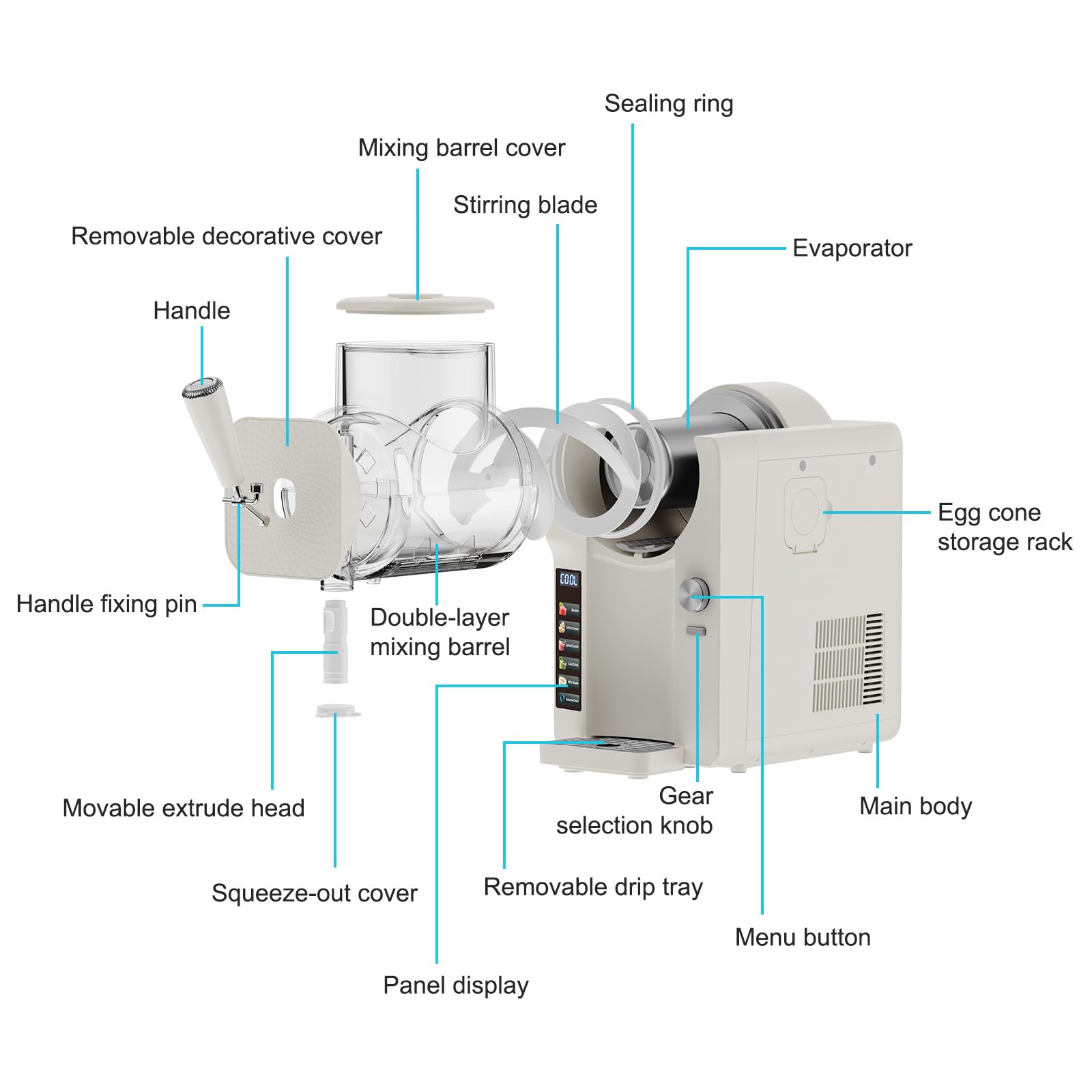 - 🧼 Hassle-Free Cleaning! Done making dessert? Just add water and activate CLEAN Mode. Removable drip tray, stirring blade and double-layer mixing barrel are dishwasher-safe, making this ice cream and slushie maker as easy to clean as it is to use