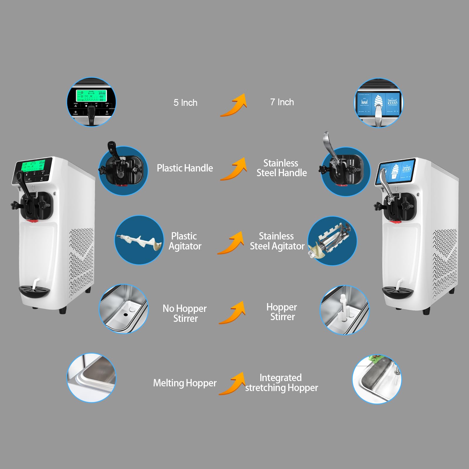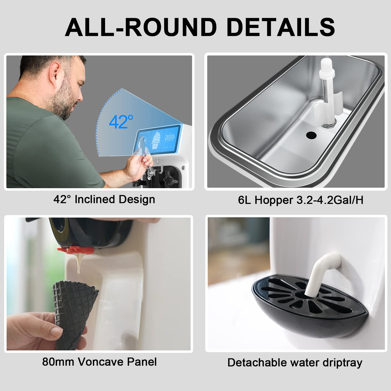 Soft Serve Ice Cream Machine, 7 Inch Screen Ice Cream Maker Machine 4.2 to 4.6 Gal/H Ice Cream Maker Machine with Pre-Cooling Soft Serve Machine with 1.6 Gals Tank for Party Store School Home
