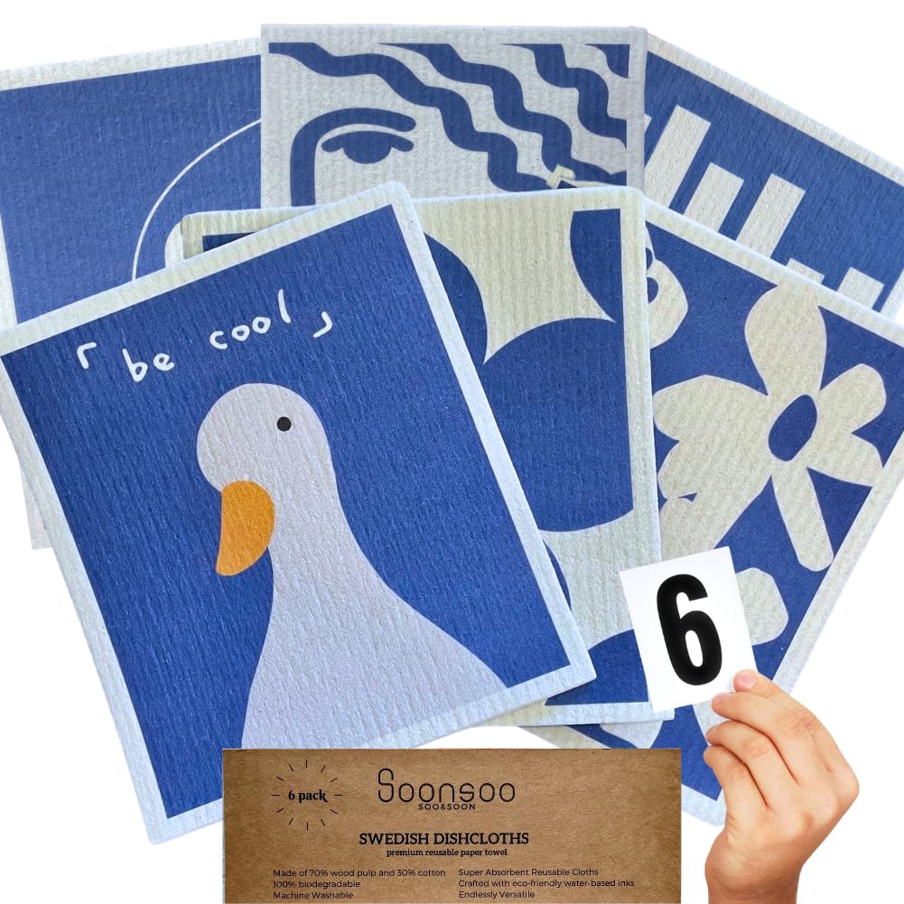 SOONSOO Swedish Dishcloths 6Pack Absorbent Eco-Friendly Reusable Cleaning Cloths for Kitchen - Multi-Purpose Machine Washable, Compostable, Quick Drying Zero Waste Cellulose Kitchen Cloths (Green)