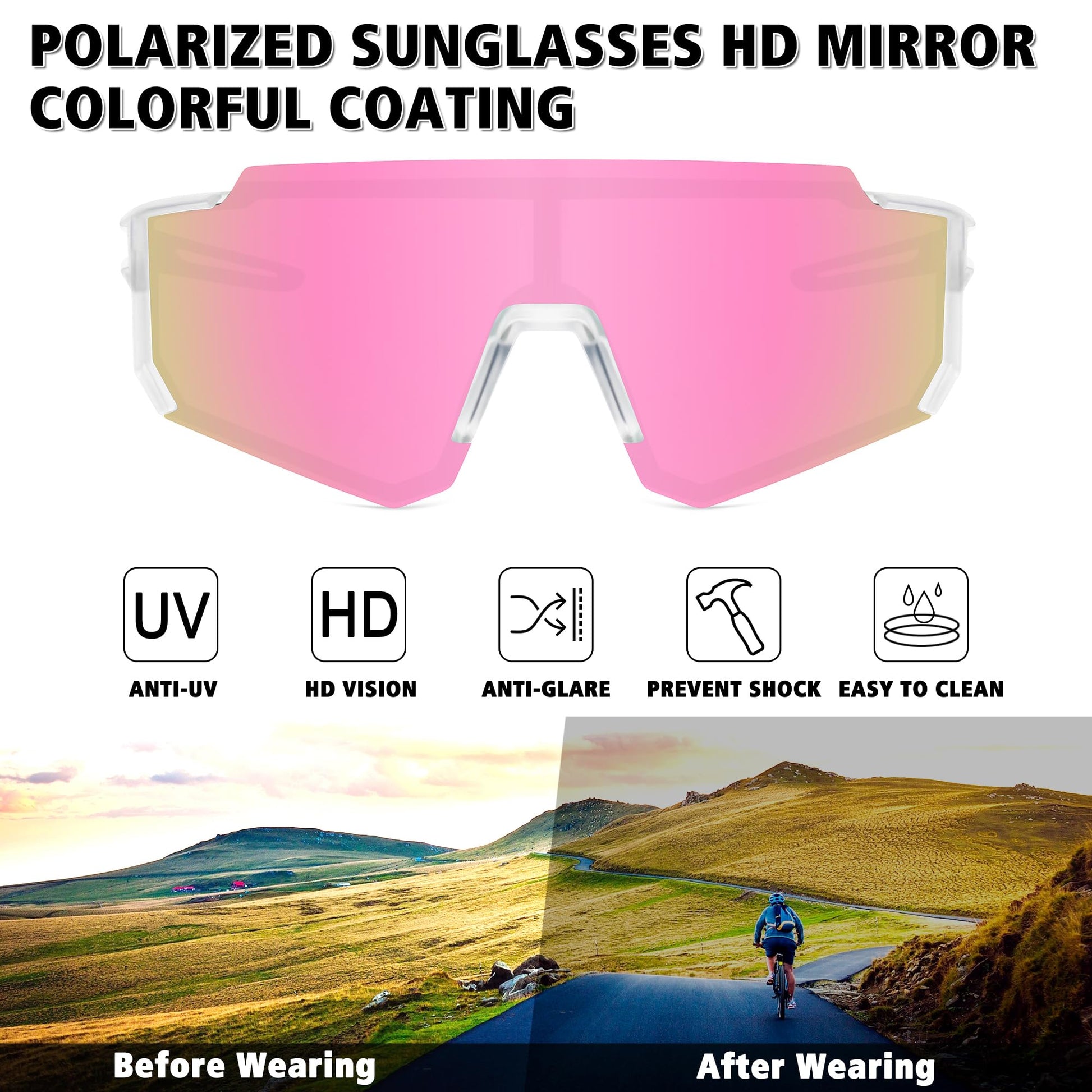 STORYCOAST Polarized Sports Sunglasses for Men Women,Driving Fishing Cycling Mountain Bike Sunglasses UV400 Protection Clear Frame-Pink Mirror Lens