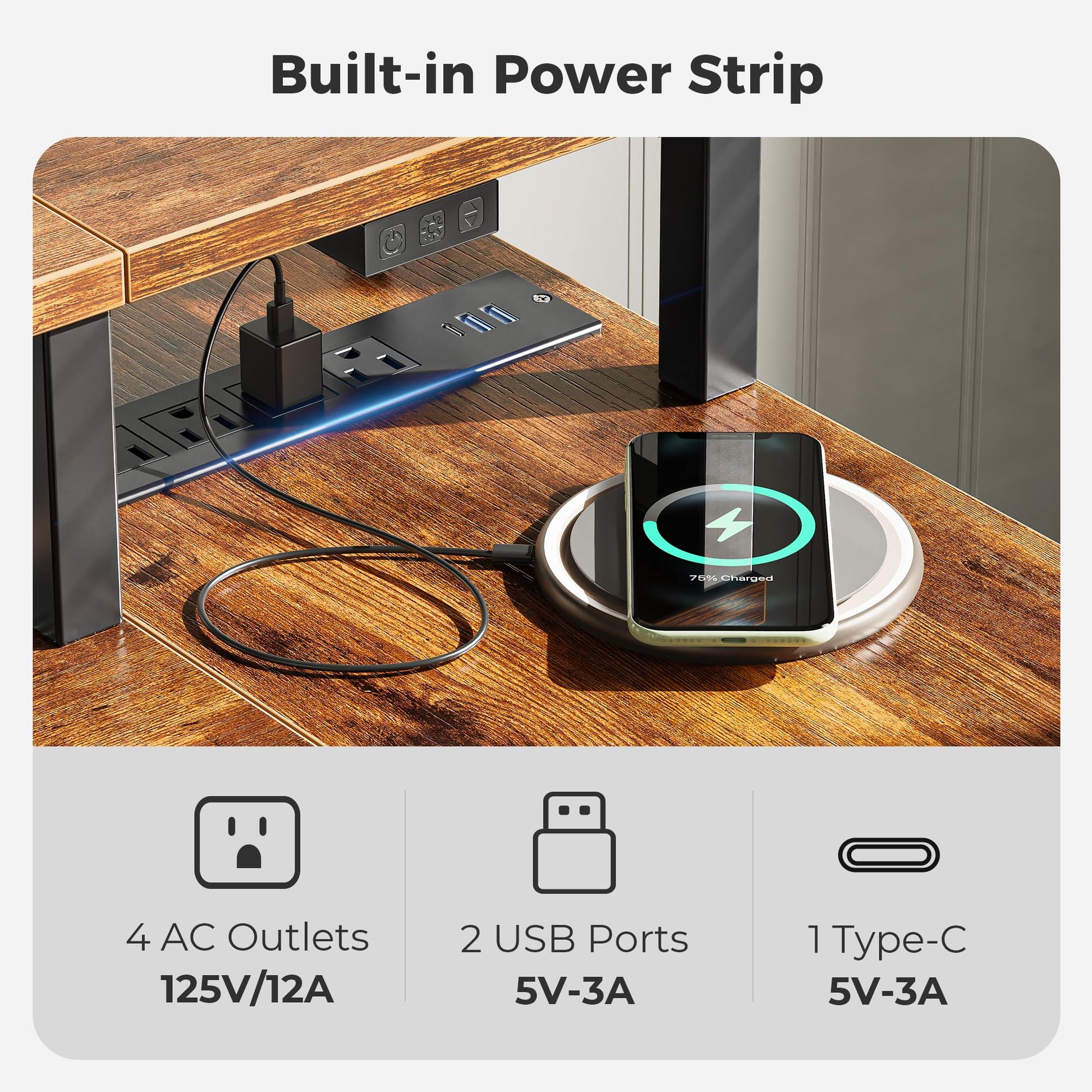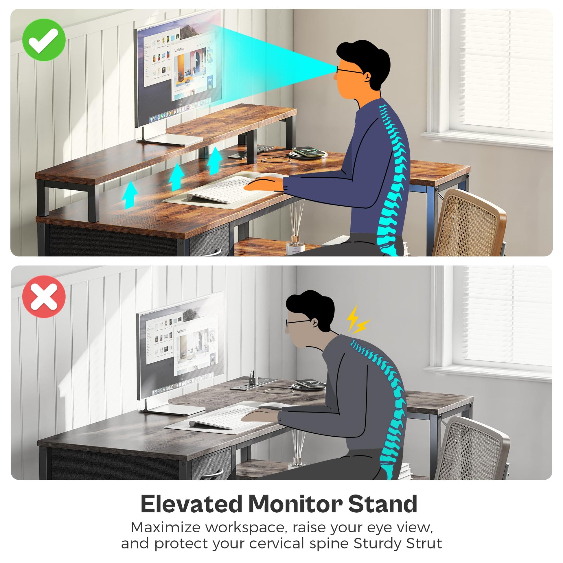- 【Desk with Power Outlets】4 AC outlet, 2 USB ports and 1 Type-C port on the gaming computer desk allow you to charge your monitor, office or gaming devices with ease. And the monitor stands help to elevate your eye lines, avoiding neck and back pains. Super considerate writing desk.