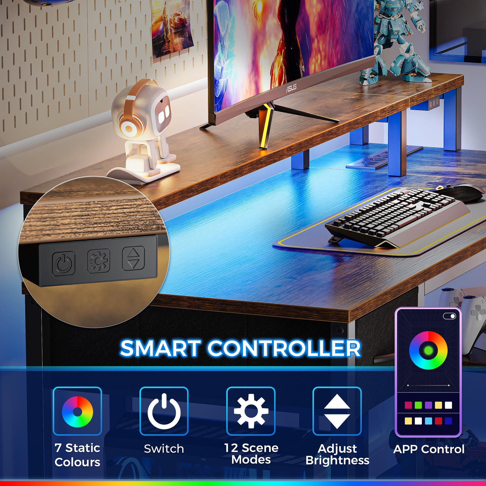 SUPERJARE 47 inch Reversible L Shaped Desk with LED Lights & Power Outlets, Computer Desk with Shelves & Monitor Stand, Gaming Desk with Drawer, Home Office Desk Corner Desk, Rustic Brown