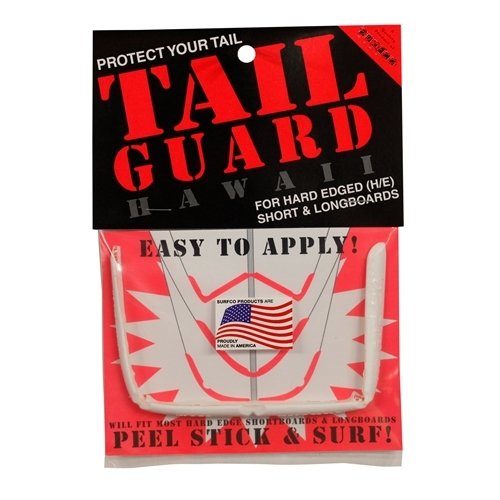 Details: INFO ON JUMBO: Protect the nose and tail of your standup paddle board or big longboard with the Jumbo Nose Guard and Jumbo Tail Guard combo pack. The Jumbo Nose Guard is designed to fit Stand Up Paddle - SUP and big longboards with full thick (1 ½”- 3”) nose shapes. For thinner (½”- 1”) nose shapes, the Longboard Nose Guard is recommended. The Nose Guard functions as a soft “shock absorbing guard” that protects the nose of the board and you from dings. The Nose Guard will not affect board performance. Easy to apply with a peel, and stick adhesive. The Jumbo Tail Guard is designed to fit Stand Up Paddle - SUP, and big longboards with full thick (1”-2”) and wide (6”- 10”) tails. For thinner (⅜”- 1”) and narrow (4”- 6”) tail shapes, the original Tail Guard is recommended. The Tail Guard functions as a soft “shock absorbing guard” that protects the tail of the board and you from dings. It will fit most squash, round pin, diamond, and swallow tails with “hard edges.” The Tail Guard will not affect board performance. Easy to apply with a peel and stick adhesive. INFO ON REGULAR: Easy to apply peel, stick and surf! Designed to protect the tail of your surfboard from dings and will not affect board performance! It will fit most shortboards, longboards, squash, round, pin, diamond, and swallow tails.