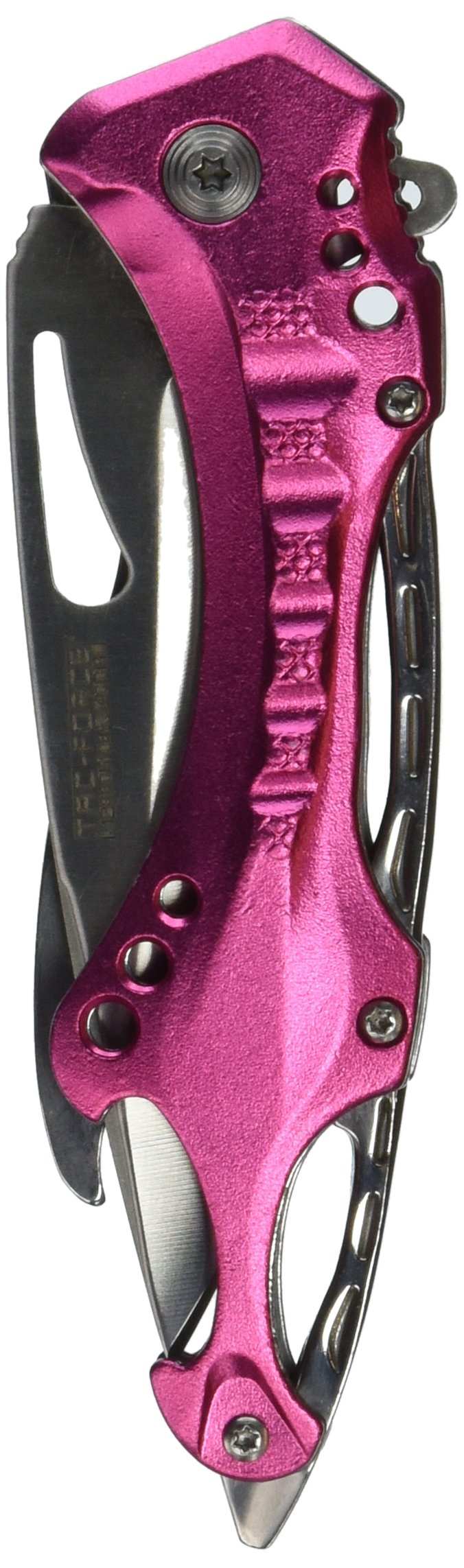 TAC FORCE Spring Assisted Folding Pocket Knife – Black Stainless Steel Blade with Pink Aluminum Handle, Bottle Opener, Glass Punch and Pocket Clip, Tactical, EDC, Rescue - TF-705RD