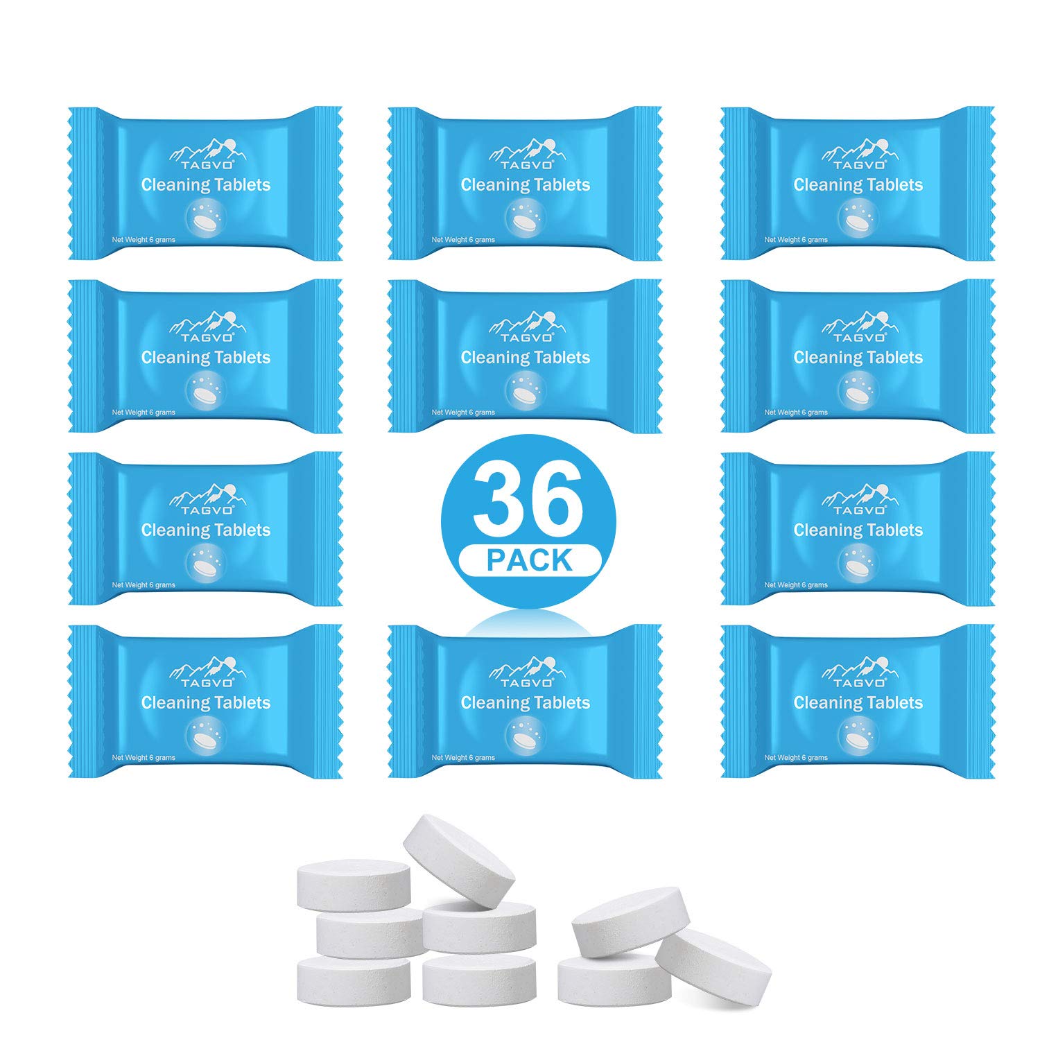 TAGVO 36 Pack Cleaning Tablets for Hydration Bladder - All Natural, Odor Free, Easy Removes Stubborn Stains Cleaning Tabs for Water Reservoir, Sport Water Bottles, Water Bladder, Hydration Backpack