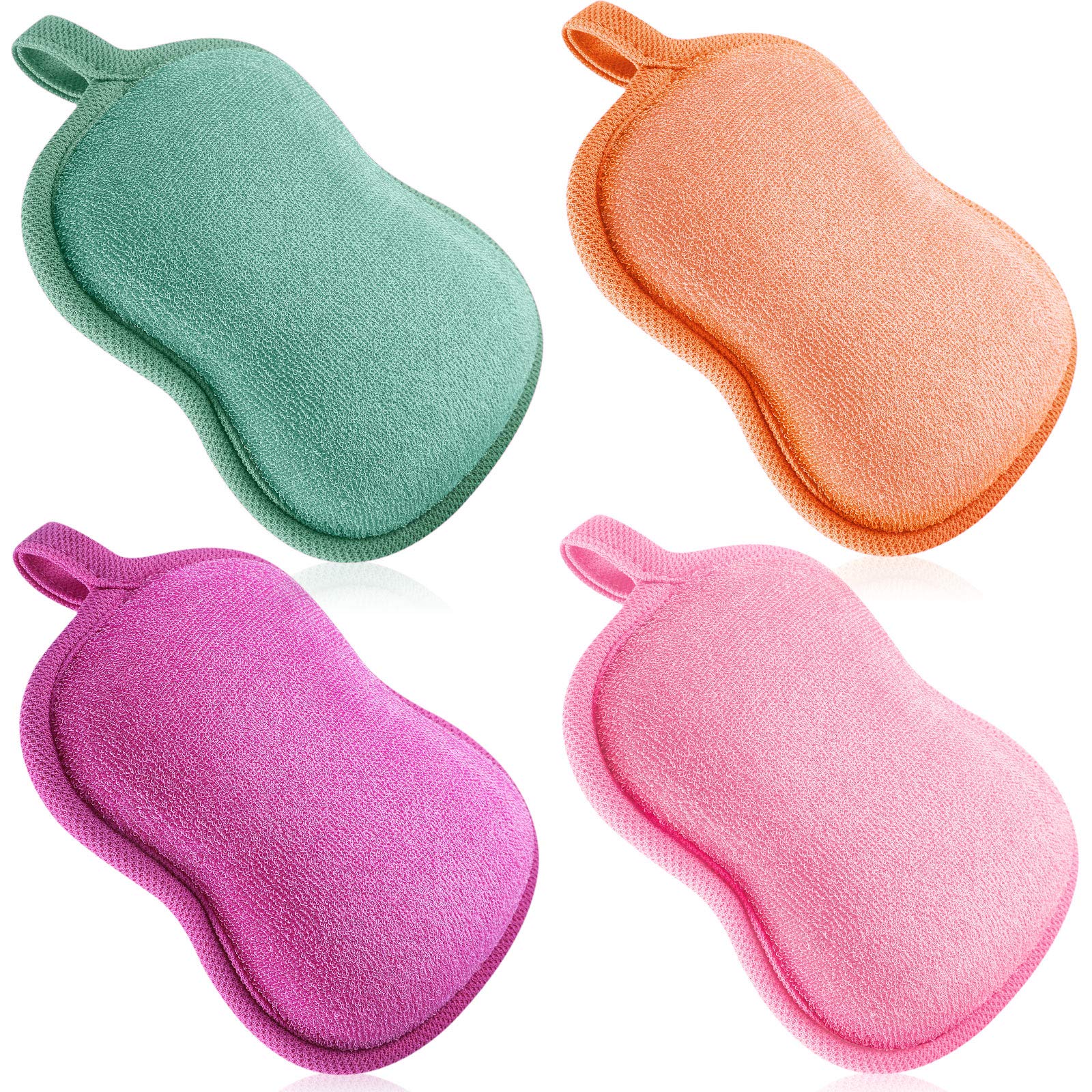 Tatuo 4 Pieces Baby Bath Sponge Cotton Baby Sponge Soft and Absorbent loofah for Kids Babies Men Women(Red, Purple, Green, Orange)
