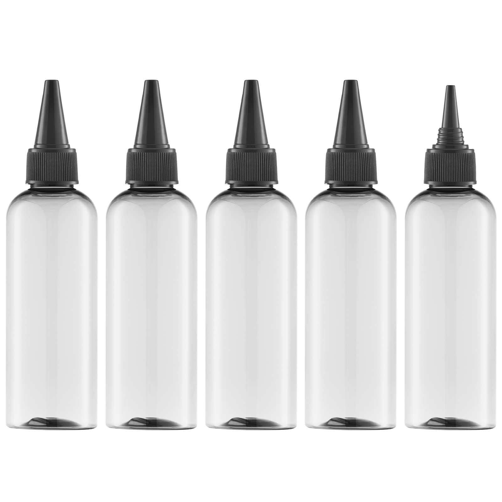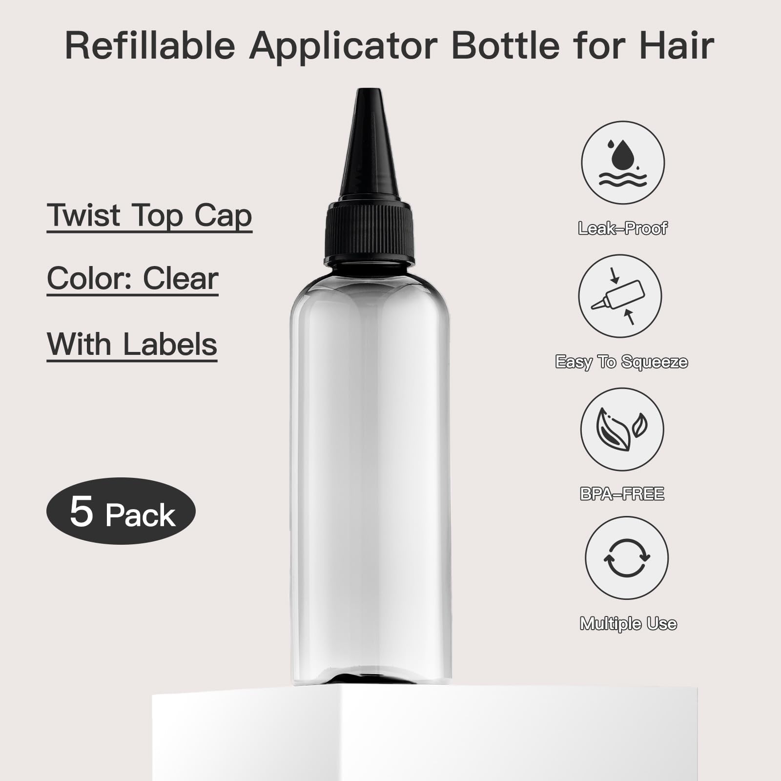 Tekson Hair Color Applicator Bottles, 5 Pack Refillable Squeeze Bottle, Empty Plastic Twist Top Cap Bottles (3.4 OZ, Clear)