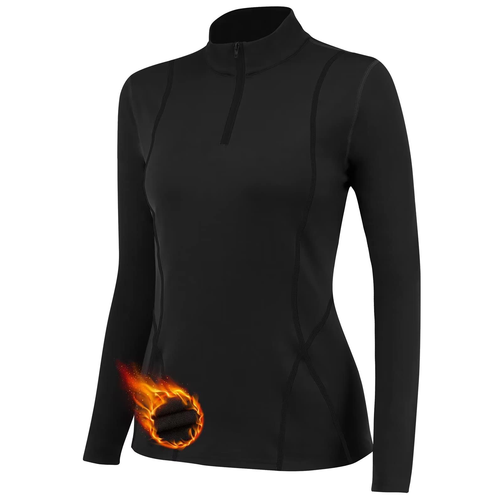 Tesuwel Ski Base Layer Women Cold Weather Long Sleeve Thermal Shirt Women Snowboard Underlayer for Hiking Running Thermal Underwear Top Women Half Zip Athletic Shirts Moisture Wicking 02513 Black XL