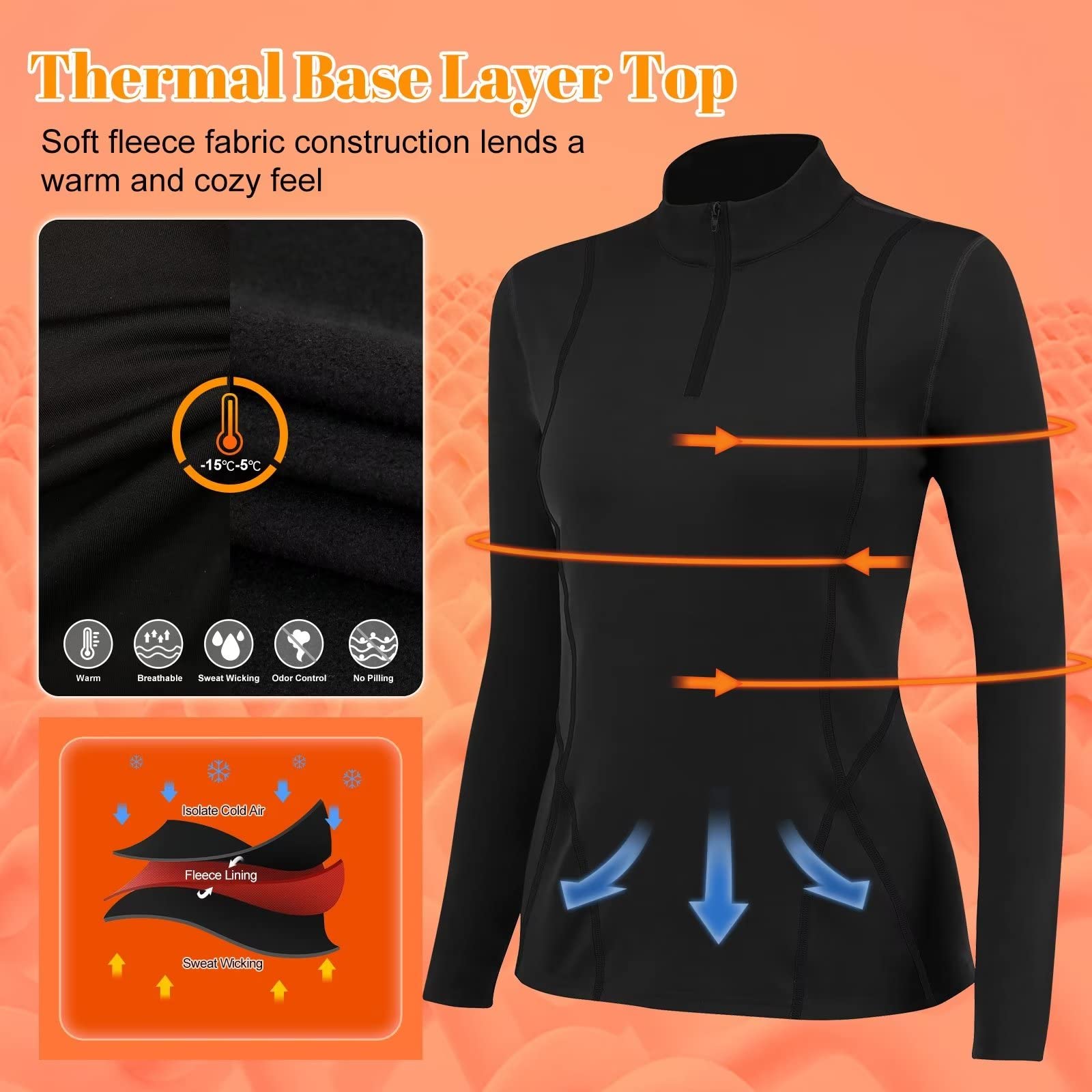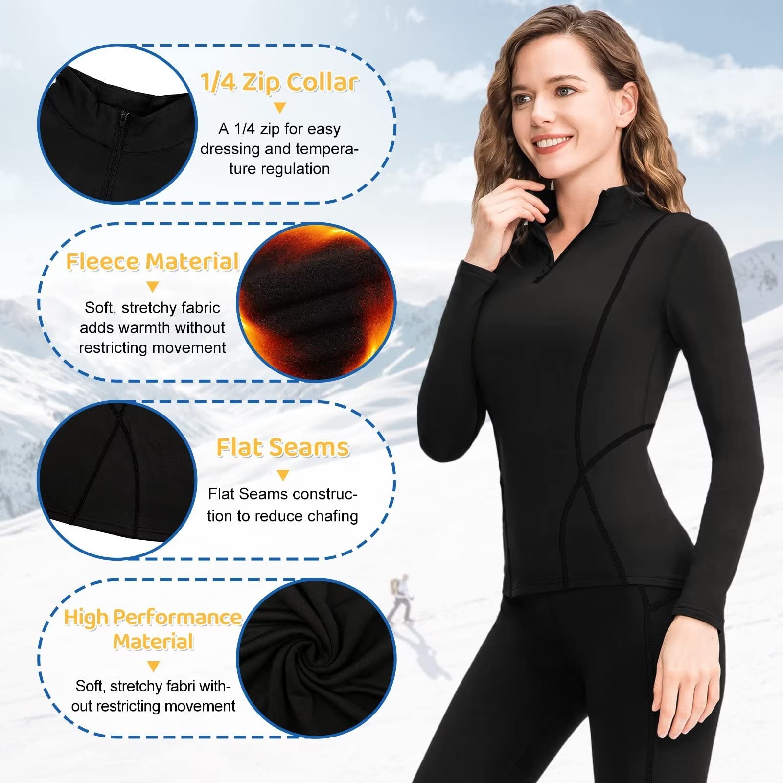 - 【Sweat-wicking & Quick Dry】 - The inside fleece lining holds heat in,The women ski base layer also has extra soft feel and wicking moisture that keeps you dry and comfortbale.