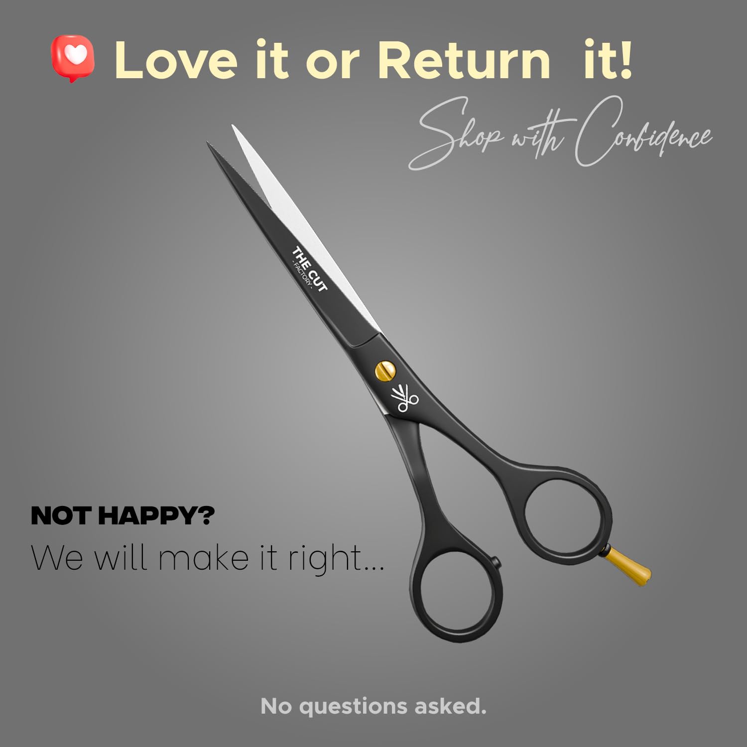 "The Cut Factory- 6.5” Professional Hair Scissors - High Carbon 420 Stainless Steel Hair Cutting Scissors, Ultra-Sharp Barber Shears for Salon & Home - Ergonomic for Men, Women, Kids & Babies"