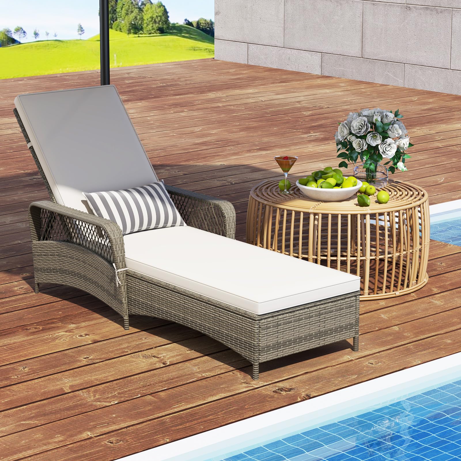 - 【 High-quality PE Wicker 】 Crafted from hand-woven mixed PE rattan, this outdoor chaise lounge chair features fade-resistant and sun-protective, maintaining its vibrant color and beauty for outdoor durability.