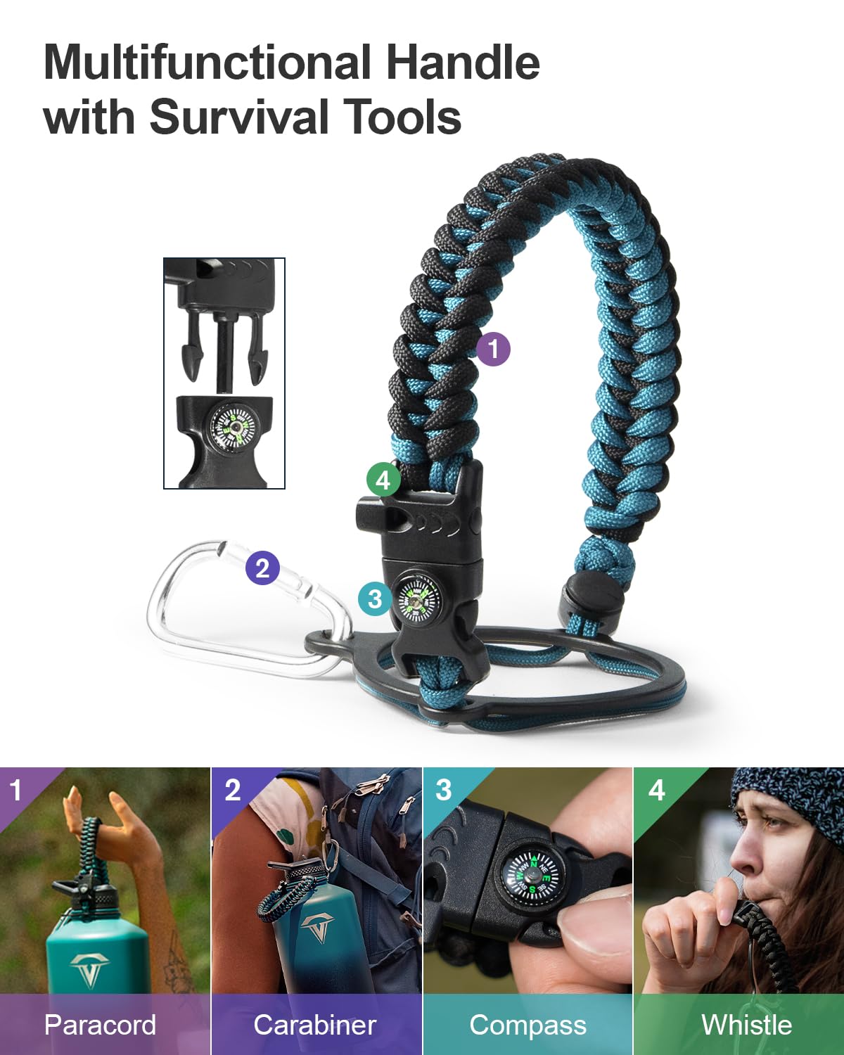 - Everything You Need: The package includes a comprehensive accessory set:Topre 64oz/128oz Water Bottle,two lids, a paracord handle, a carrying pouch, two straws and a straw brush.