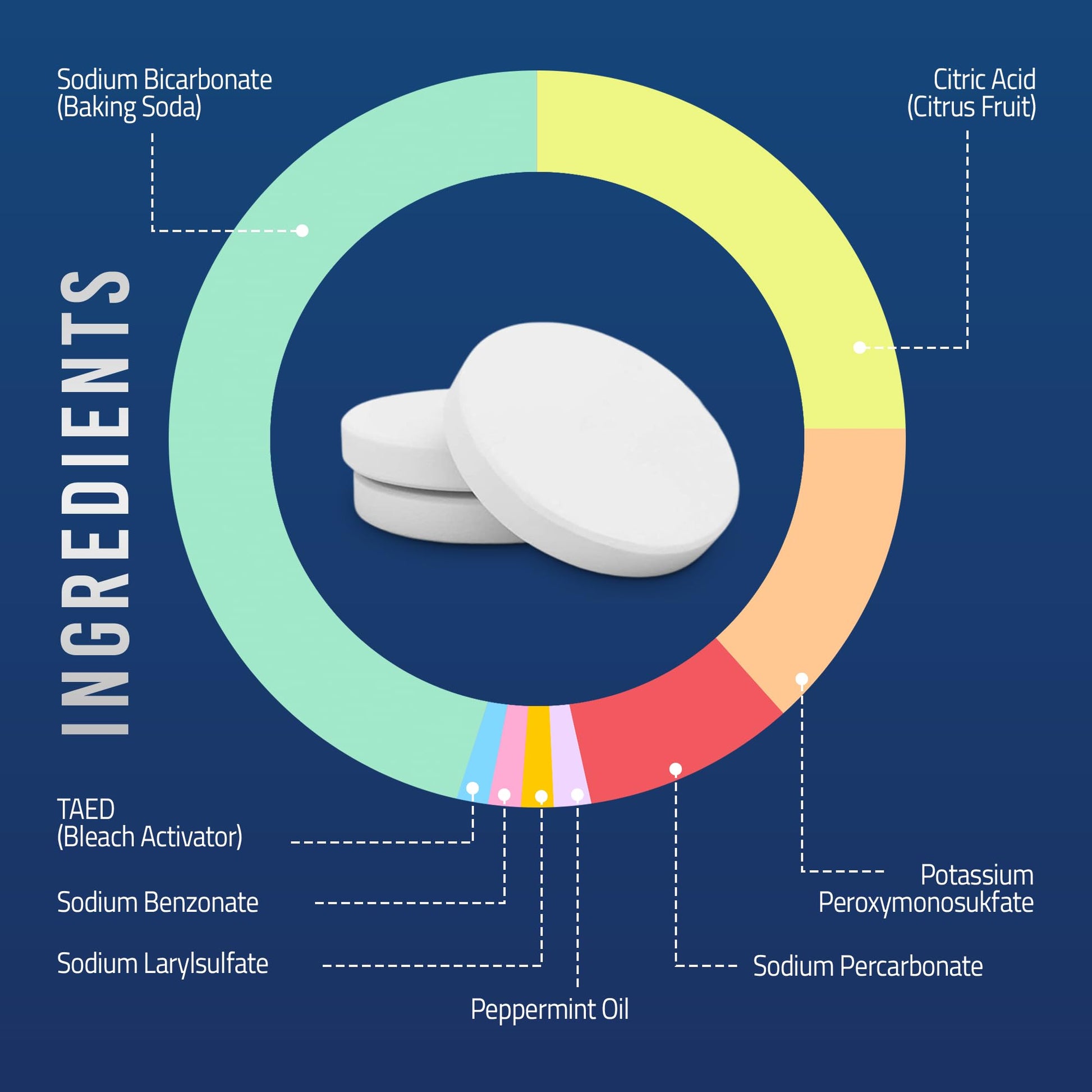 - ✔️The tablets are made from 100% natural, biodegradable, plant-based ingredients so that it’s safe for both you and the environment. No toxic chemicals used!