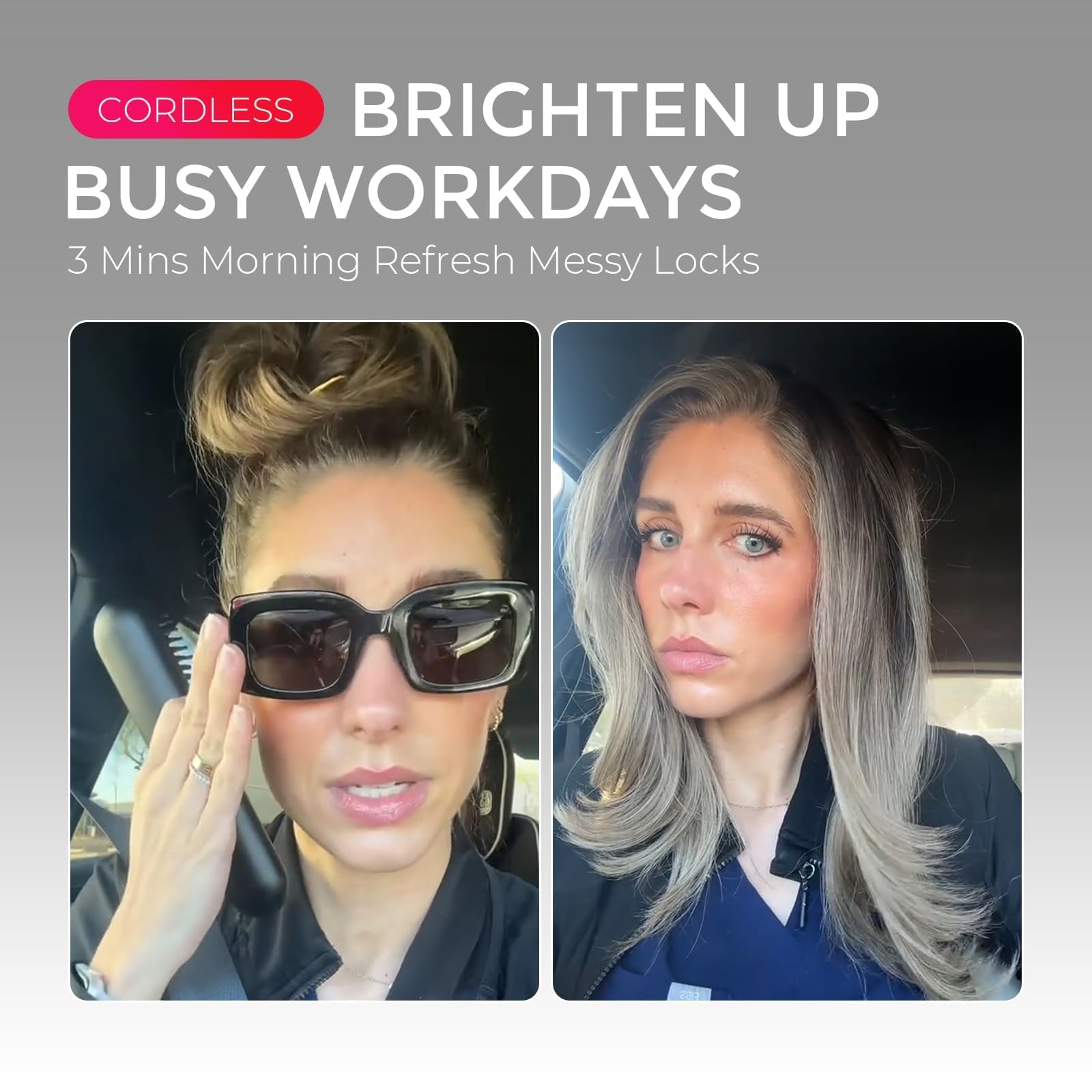 - STYLES GALORE, TAKE YOUR PICK: Effortlessly revamp your appearance, adding texture and volume with precision. Bid farewell to frizzy locks. Beyond mere hair straightening—from boosting roots to flipping ends, myriad styles await your selection. Having a cordless hair straightener means you don't need to visit a professional hair salon and spend much money on tyling anymore. 3-level temperature adjustment meets the styling demands of hair types ranging from 2A to 3B.