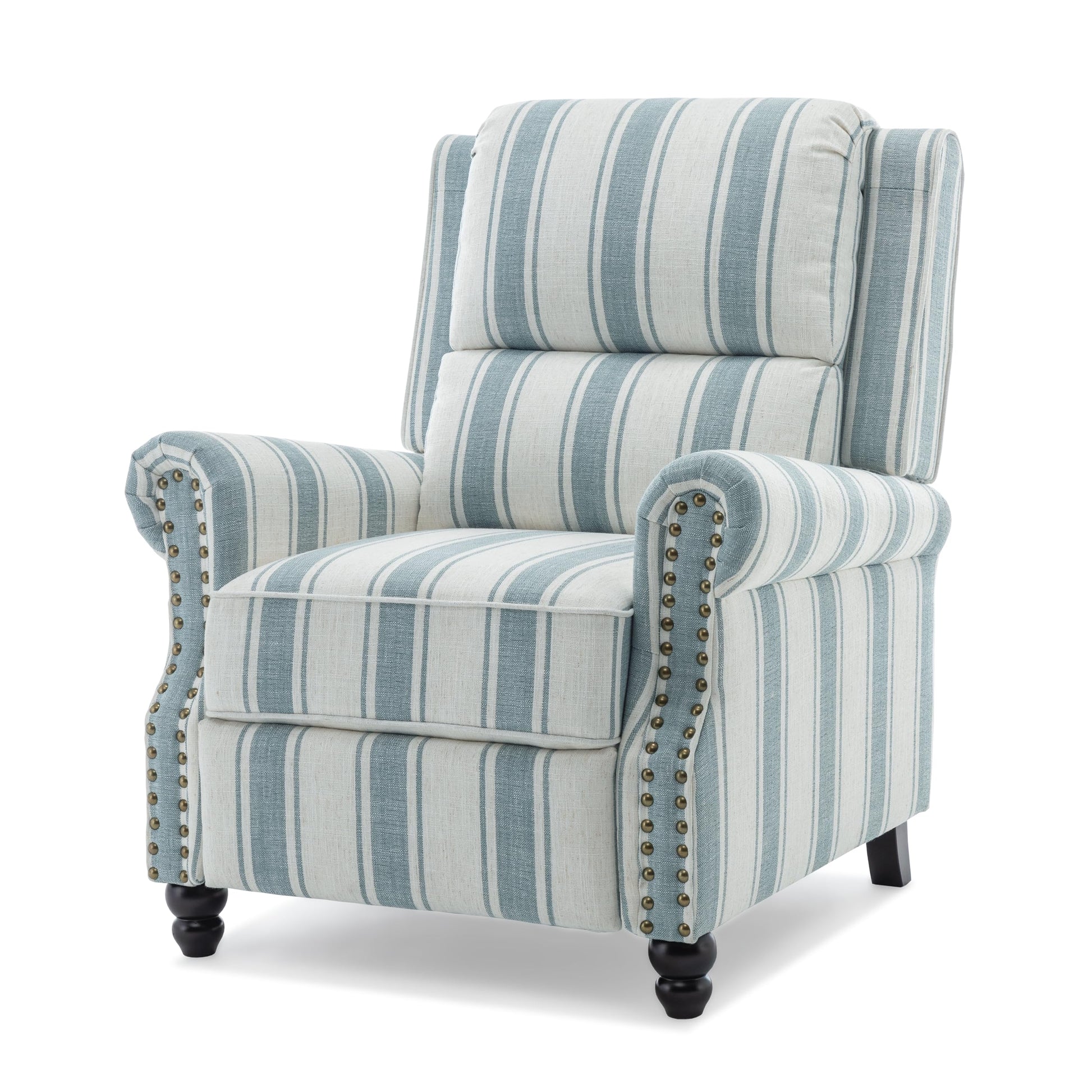UIXE Pushback Recliner Chairs Set of 2, Fabric Armchair Push Back Accent Chair, Rivet Trim Club Chair Home Theater Overstuffed Single Sofa Reading Seat for Living Room, Stripe Blue