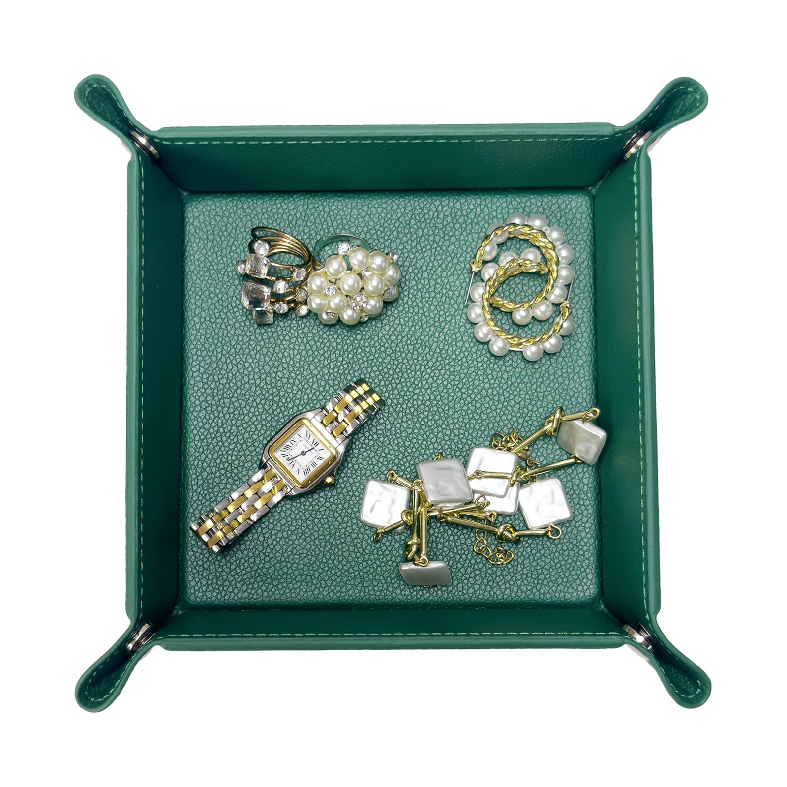 UnionBasic Valet Tray, Jewelry Tray for Rings Earrings, Entryway Catchall Caddy for Coins Keys Change, Nightstand Organizer Bedside Valet Holder, Trays for Electronic Gadgets, Lychee Christmas Green