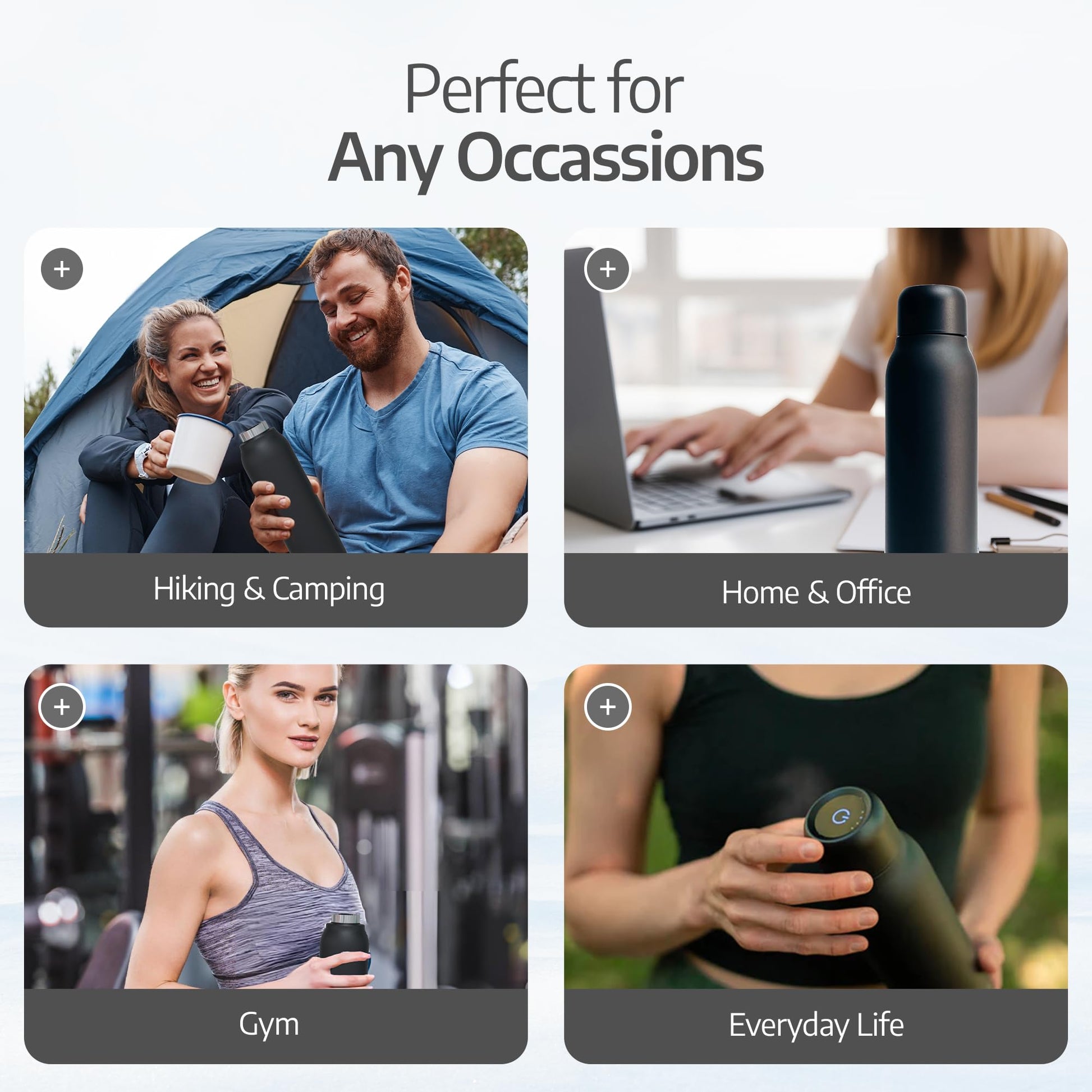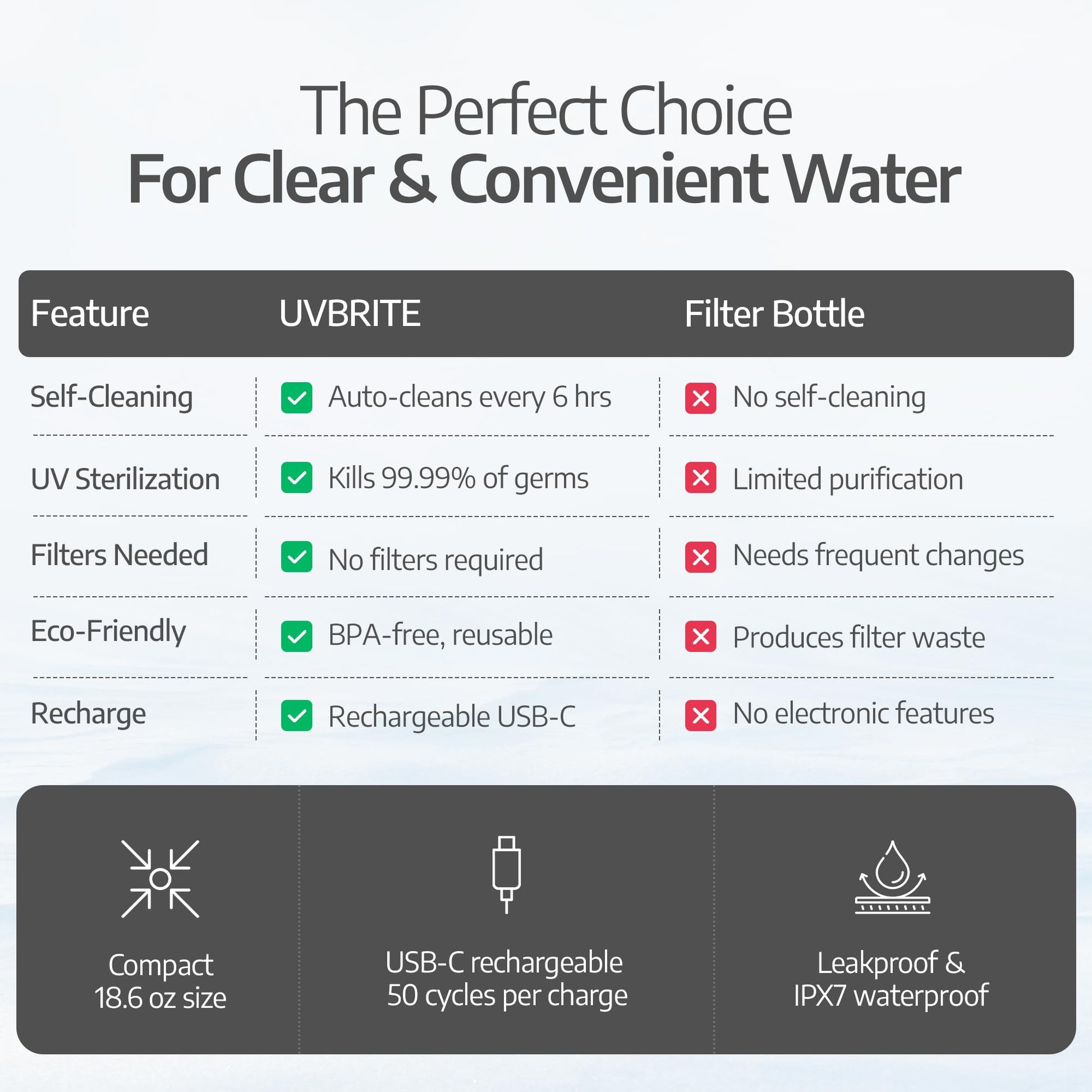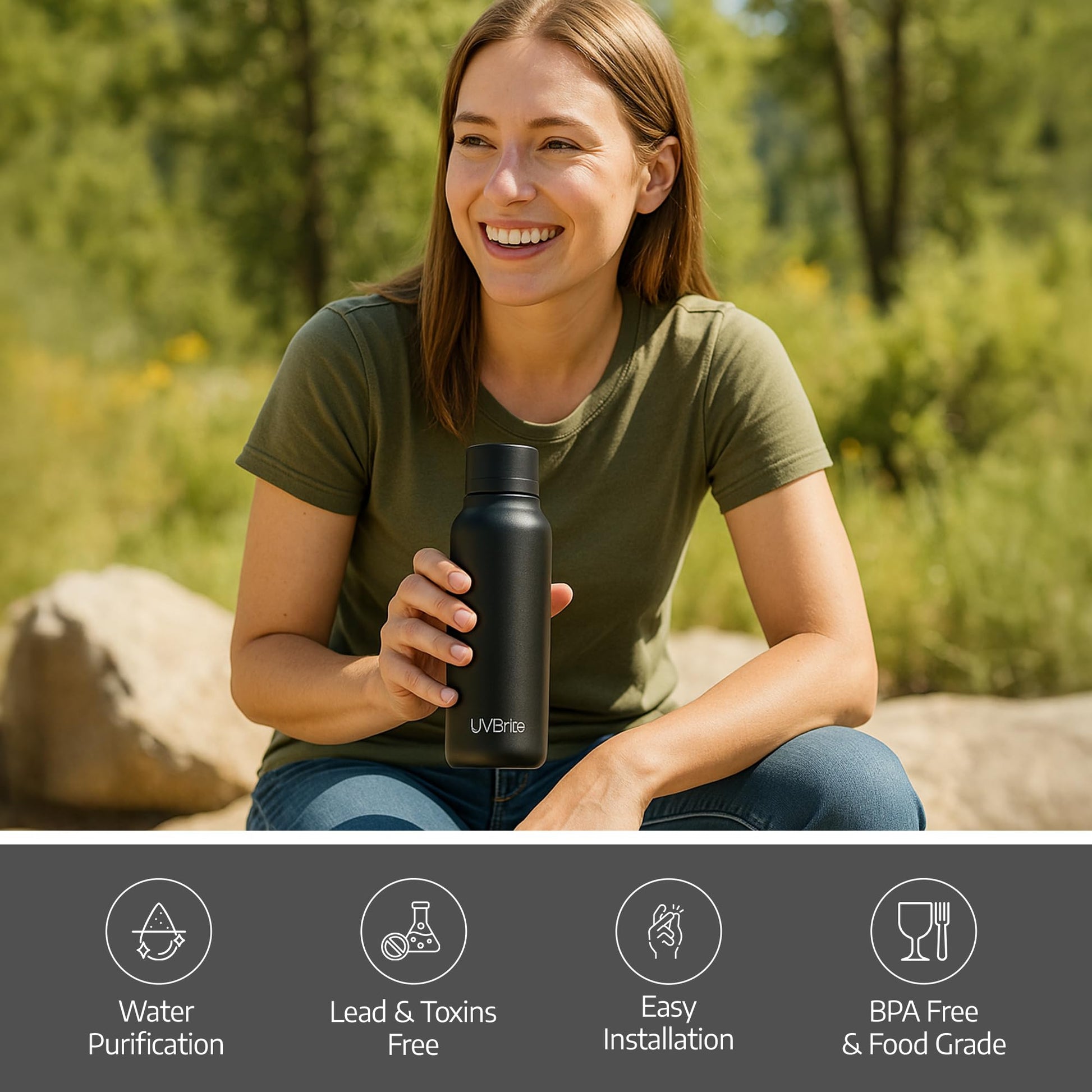 UVBRITE UV self-Cleaning and Water-Purifying Bottle TT-B02-18.6 Ounce Insulated Rechargeable Stainless-Steel Tumbler with Safety Lock Prevents Accidental Exposure Ideal for Outdoor and Emergency use
