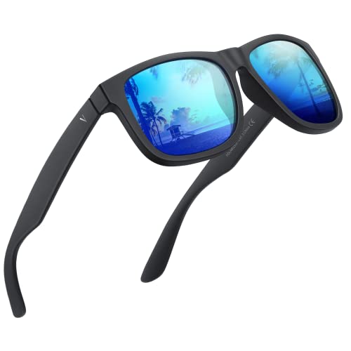 VELAZZIO Polarized Sunglasses for Men Women UV400 Protection Unisex Sunglasses Ultralight Frame for Driving Cycling Skiing, Black Frame Blue Lens