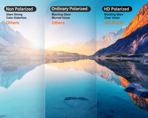 Details: HD Polarized Lens: Comparing with normal HD Polarized lens, our polarized sunglasses can filter out reflected glare without haze or optical distortion. Our polarized sunglasses provide a high clarity vision in front of you to see clearly and more comfortably. 100% UV400 Lens: VELAZZIO sunglasses can effectively blocking harmful UVA, UVB & UVC rays. They can protect your eyes when you driving, fishing, cycling or enjoy the sunshine. Comfortable to Wear: We committed to bring you the comfortable wearing experience. Ultra light one-piece nose pads makes you feel light on your face, enhancing your wearing comfort even for long time.