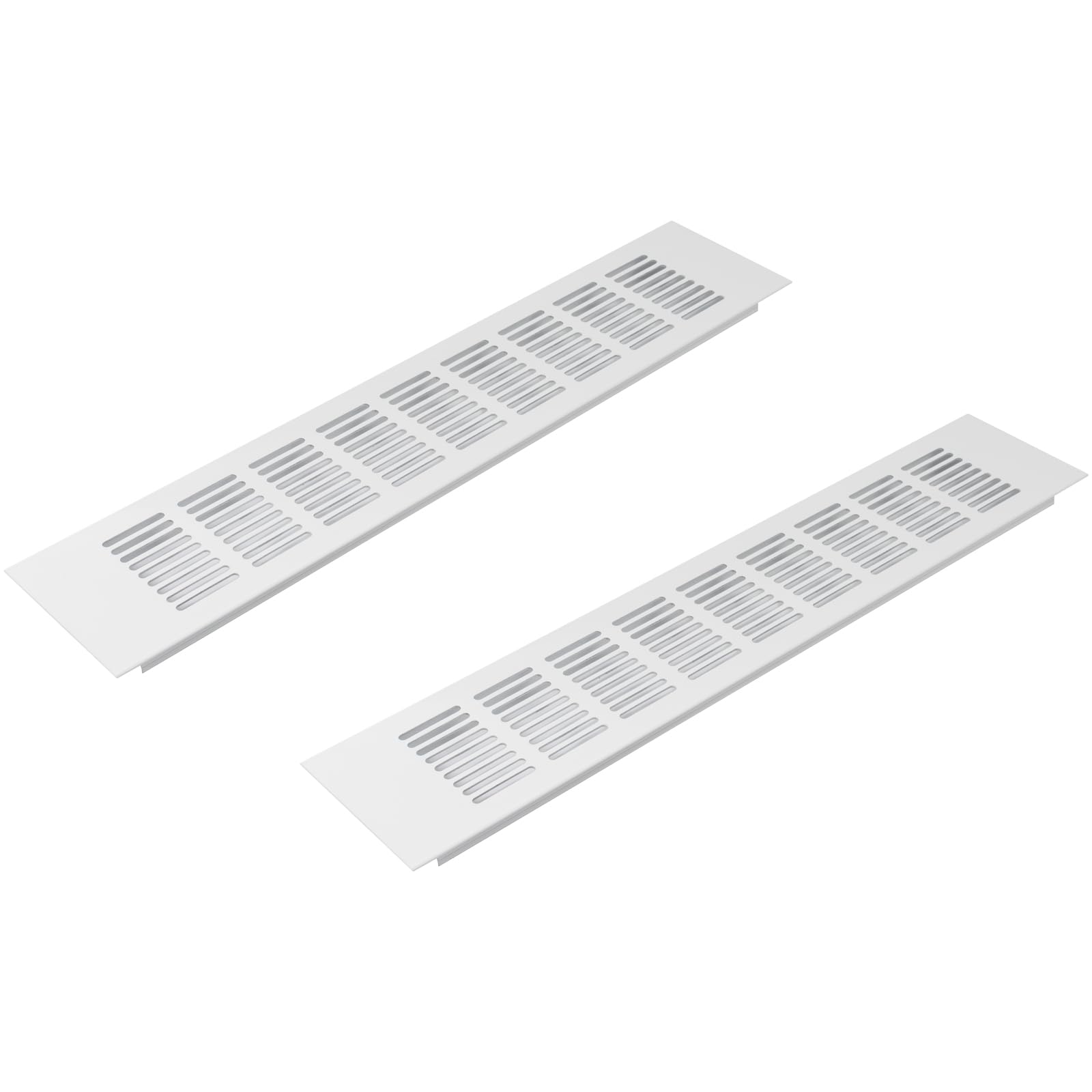Vent Systems 16 x 3 Inch (Outer Dimensions) Air Supply Ventilation Grille - Pack of 2 - White Aluminum Rectangle Intake/Exhaust Door Vent Deflector - HVAC for Home Improvement Floor, Wall Duct Cover