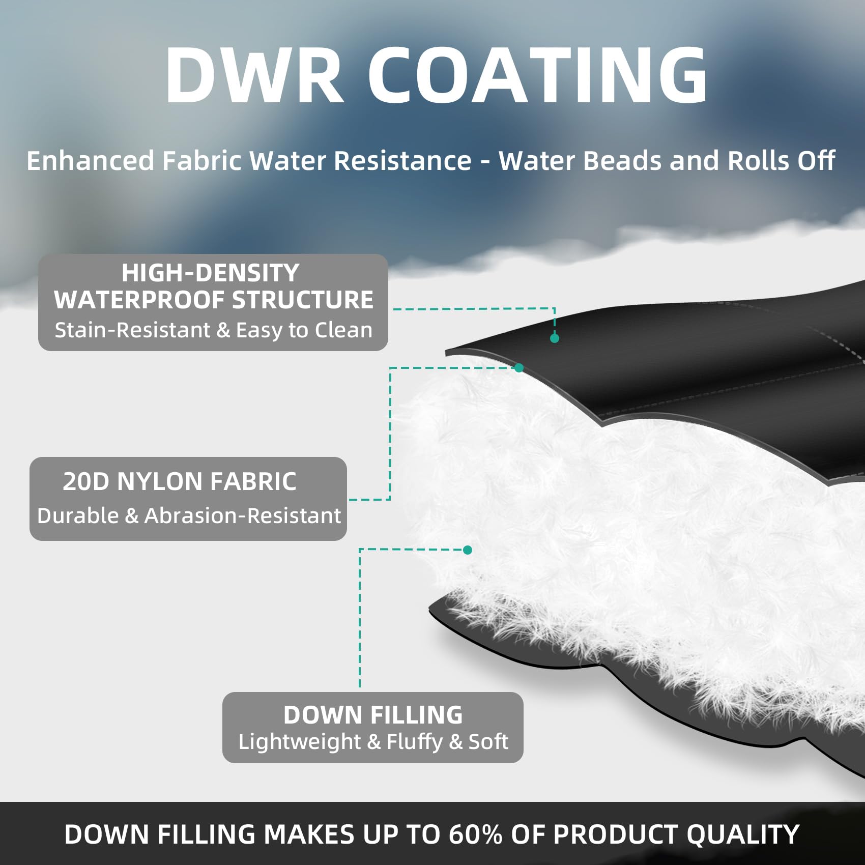- PREMIUM MATERIALS and WATER-RESISTANT: Made from 20D insulated nylon fabric, This waterproof camping blanket offers ultimate outdoor comfort and tear resistance. With enhanced insulation, it ensures efficient warmth retention, keeping you cosy in any weather condition. The additional DWR waterproof coating enhances the waterproof capability of this down blanket. (Machine washing is not recommended due to down filling; preserves longevity and performance)