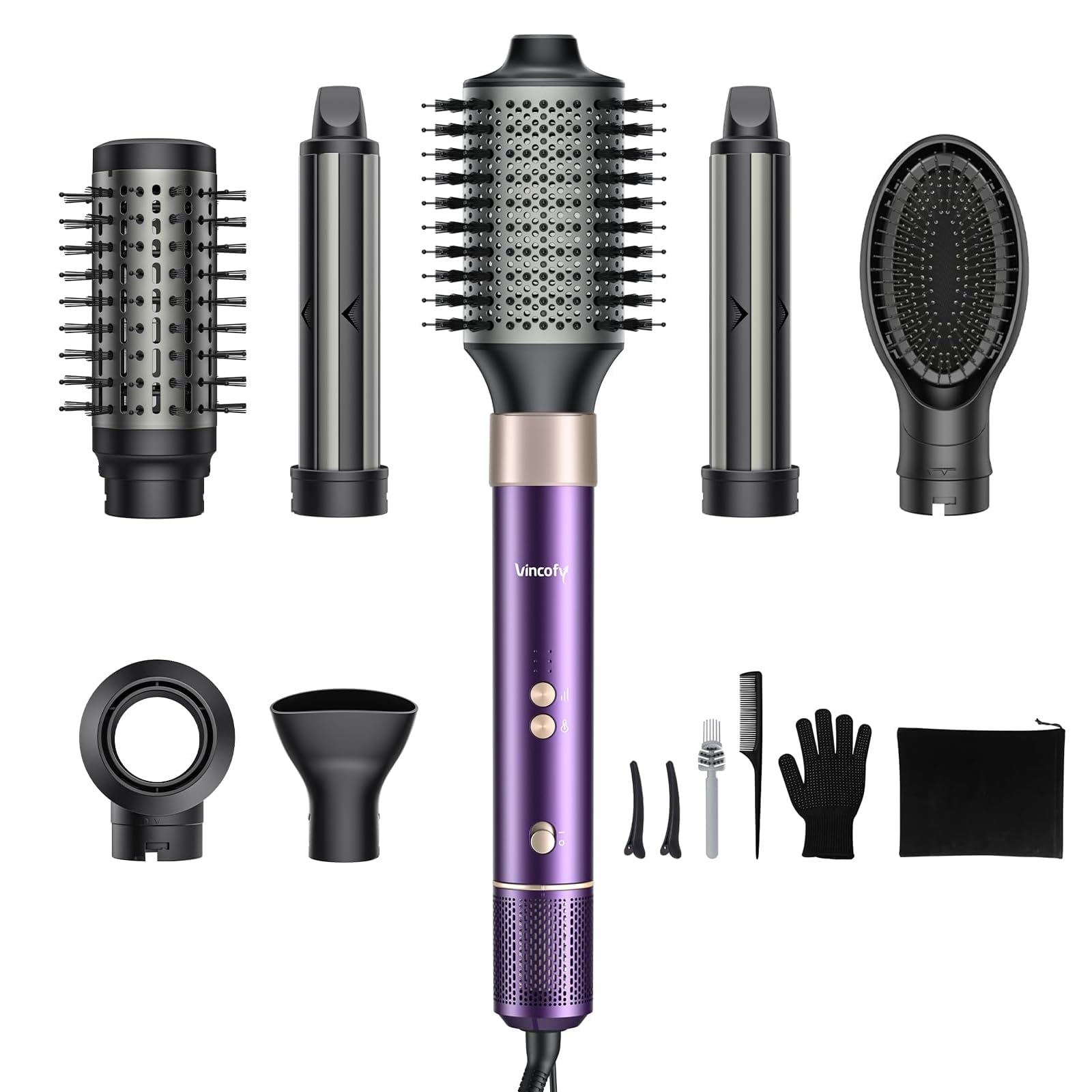 Vincofy 7-in-1 Hair Dryer Brush and Hair Styler Set – Fast Drying, Curling, Straightening & Volumizing – Hot Air Styling Tool with No Heat Damage – for All Hair Types – Lavender