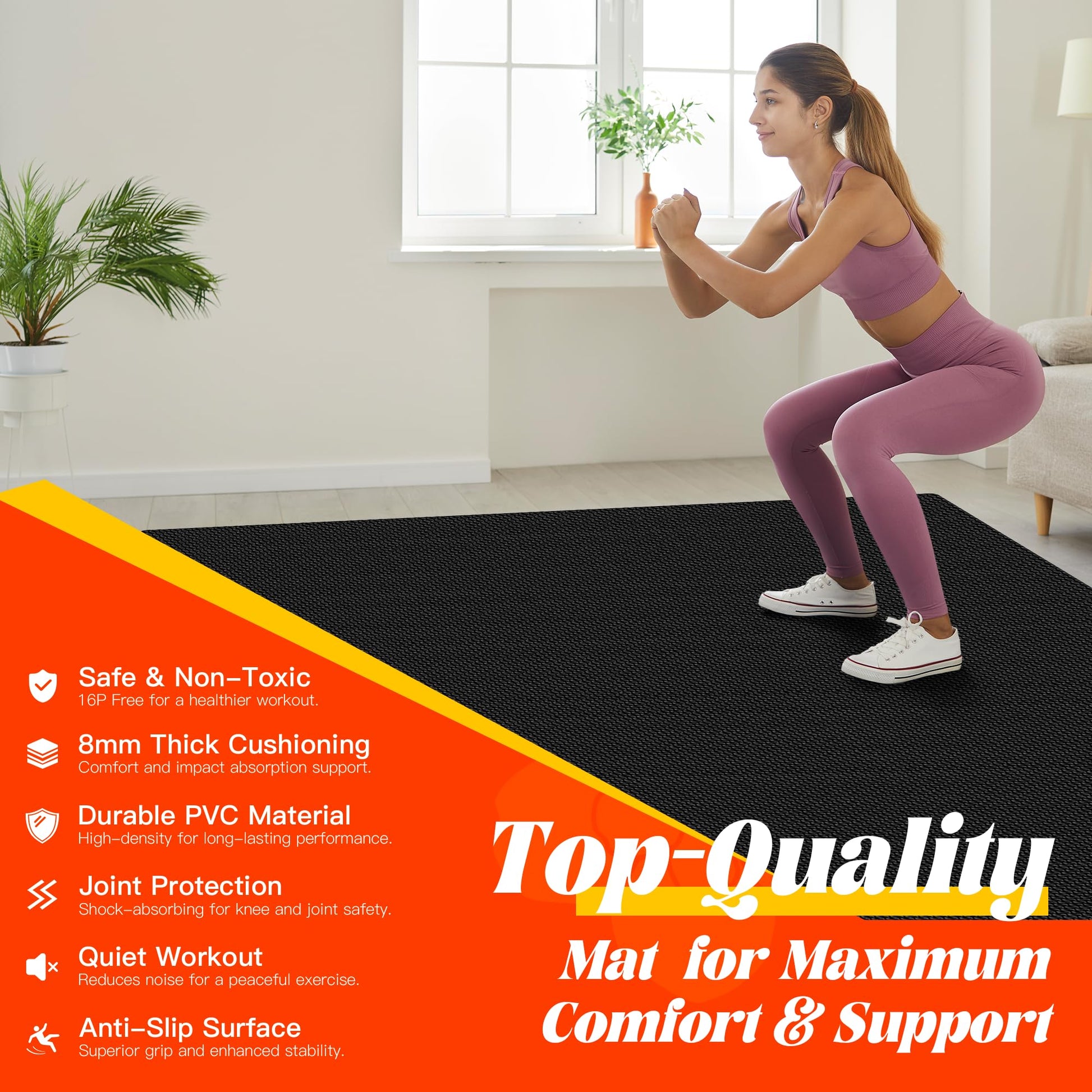 • 🧘‍♀️【Versatile for HIIT, MMA, Cardio, Yoga & More】From weight training to MMA and pilates, this large exercise mat is built for it all. Create your home gym in any room or garage—no need to compromise your routine
