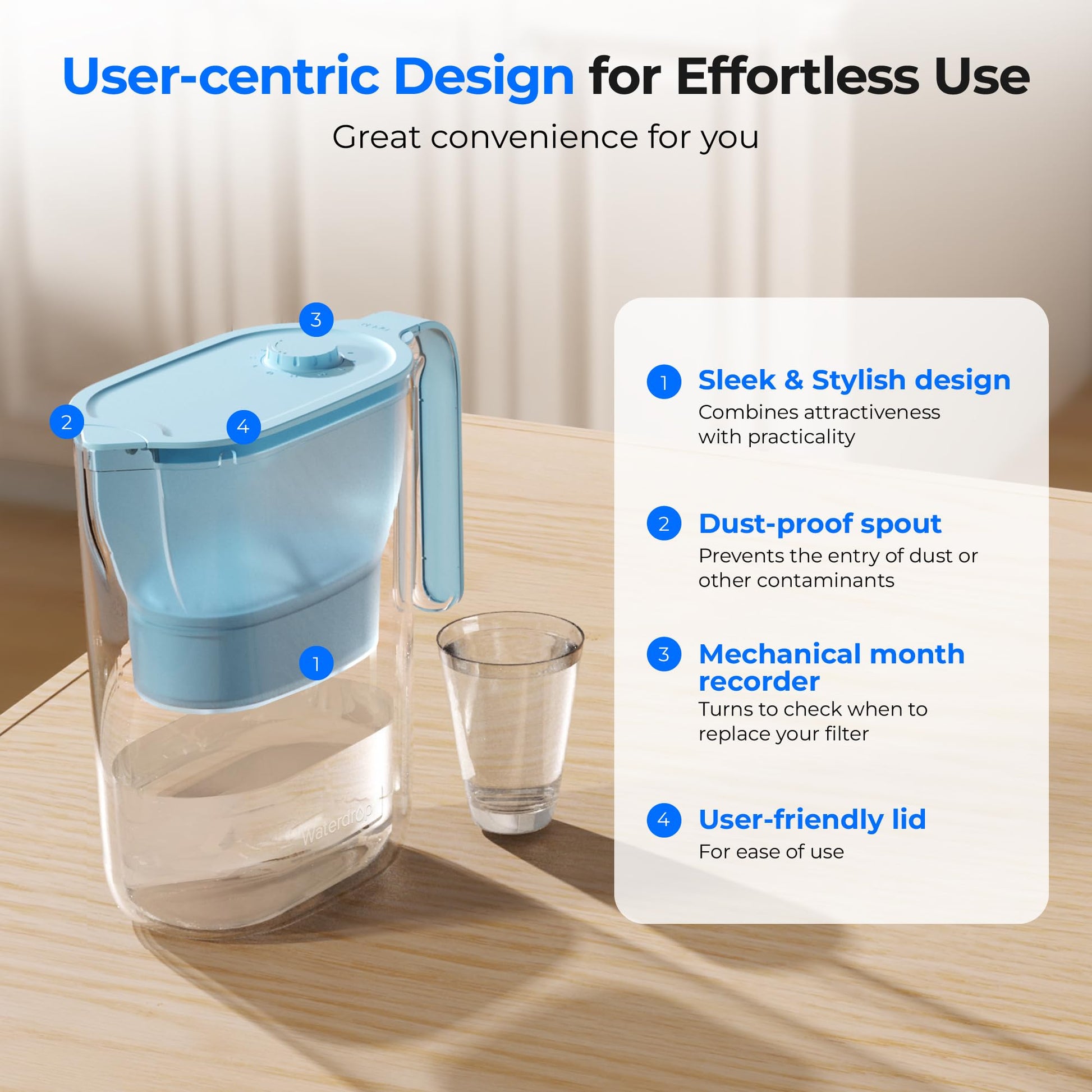 Waterdrop Water Filter Pitcher, 200-Gallon Long-Life, Countertop NSF Certified Water Purifier, Replaces 6,400 Plastic Water Bottles a Year, Reduces Chlorine, PFOA/PFOS, 7-Cup, Blue