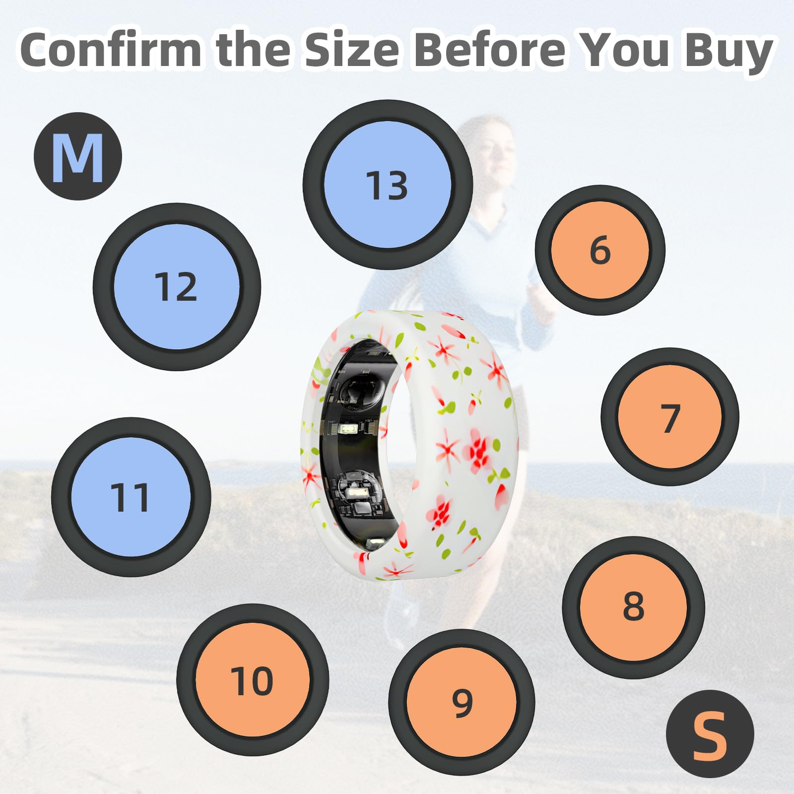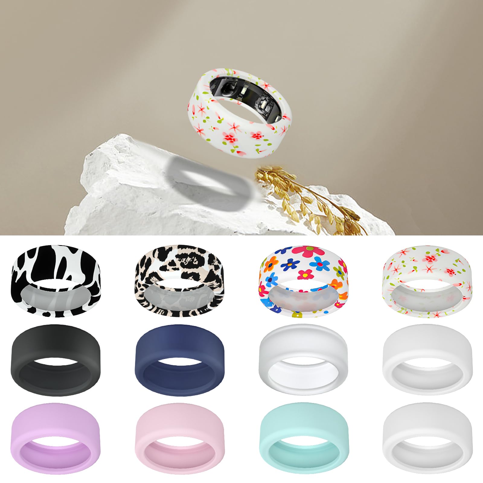 Wawoday Silicone Ring Protector Compatible with Oura Ring, Elastic Ring Cover for Oura Ring Gen 3 for Working Out (Floral/Small, M (11/12/13))