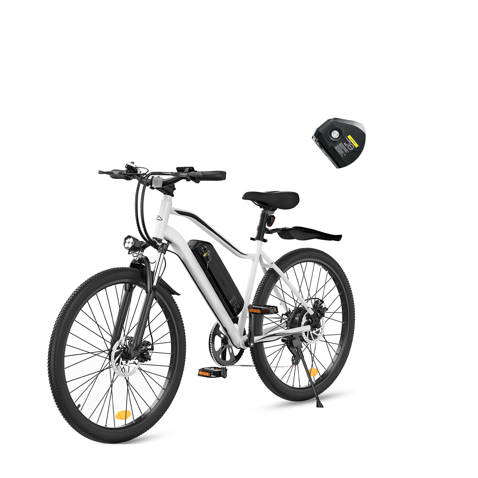 - 【Reliable Safety Features】The fast electric bike stays visible and protected with a bright front LED headlight, rear safety light, integrated bell, and double-layer fenders
