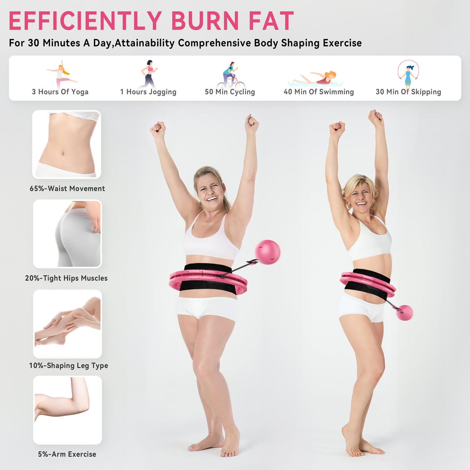 Weighted Hula Hoop for Adults Weight Loss,Infinity Weighted Hoop Plus Size with Sweat Belt,Waist Trainers for Women,Exercise Hula Hoop Womens Weight Loss at Home (Bright Pink)