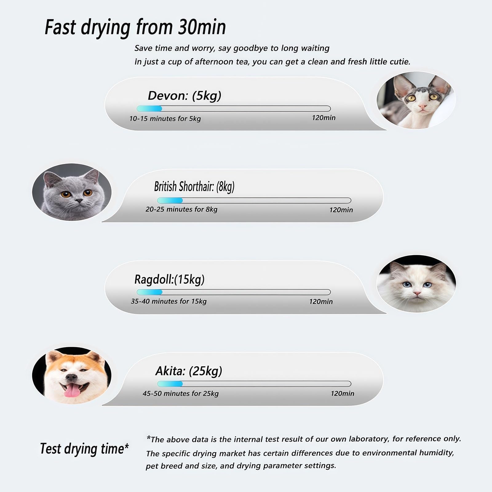 - Efficient Drying Performance: This pet dryer features a powerful motor and a patented air path system to provide constant airflow, ensuring your pet is dried evenly and efficiently. It covers hard-to-reach areas like the belly, toes, and armpits