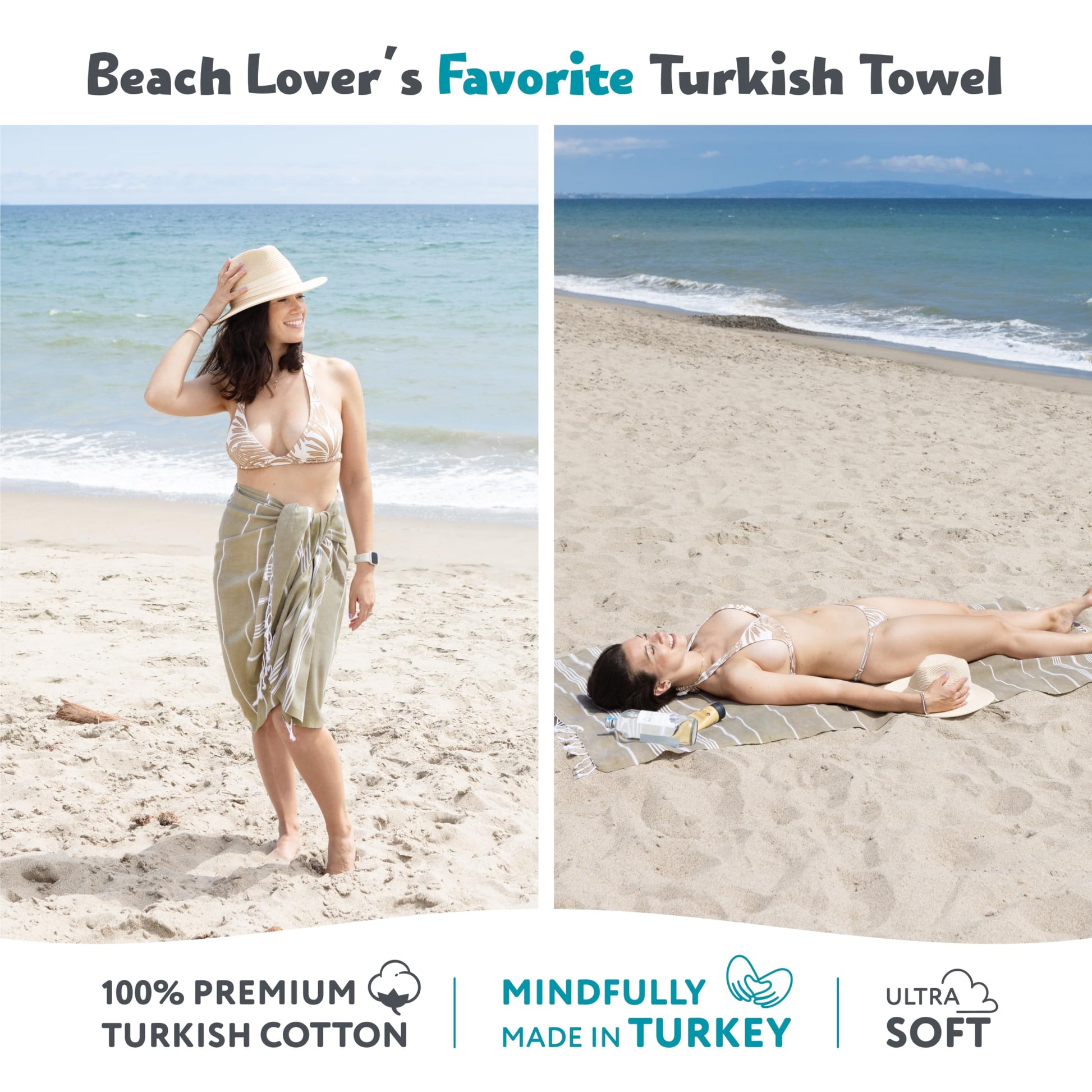 WETCAT Turkish Beach Towel Oversized 38x71 100% Cotton Sand Free Quick Dry Extra Large Light Travel Towel for Adults Beach Accessories Gifts - Pale Olive Green