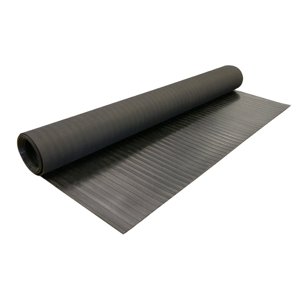 - Corrugated rubber floor mat with wider ribs for comfort and easy cleaning