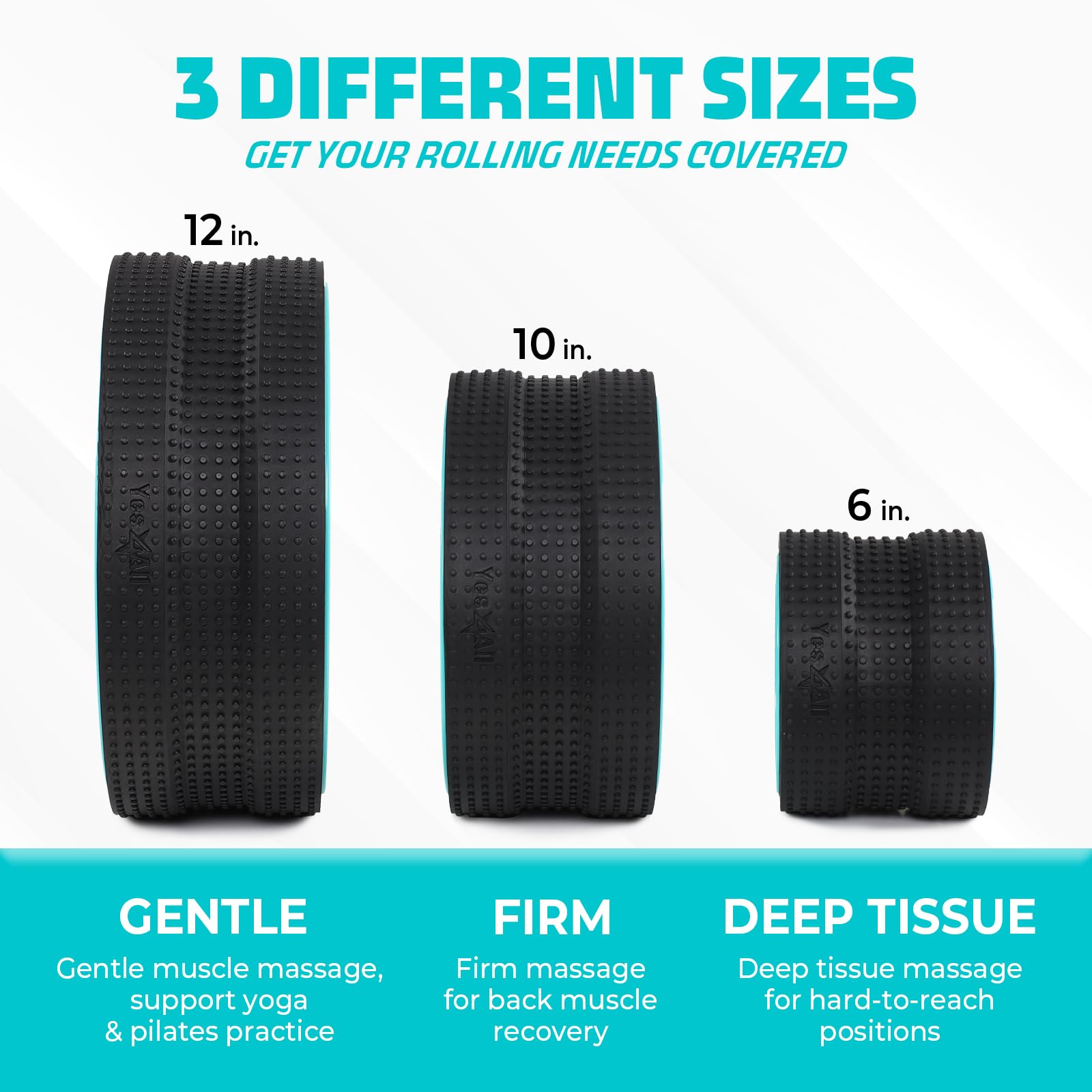 - VERSATILE FOAM ROLLER SET: Comes with 3 different sizes of 6', 10' & 12' diameter, back cracker roller for muscles deep tissue is designed to have suitable height and firmness for lower-to-upper back. shoulder, hips and leg, and neck stretcher