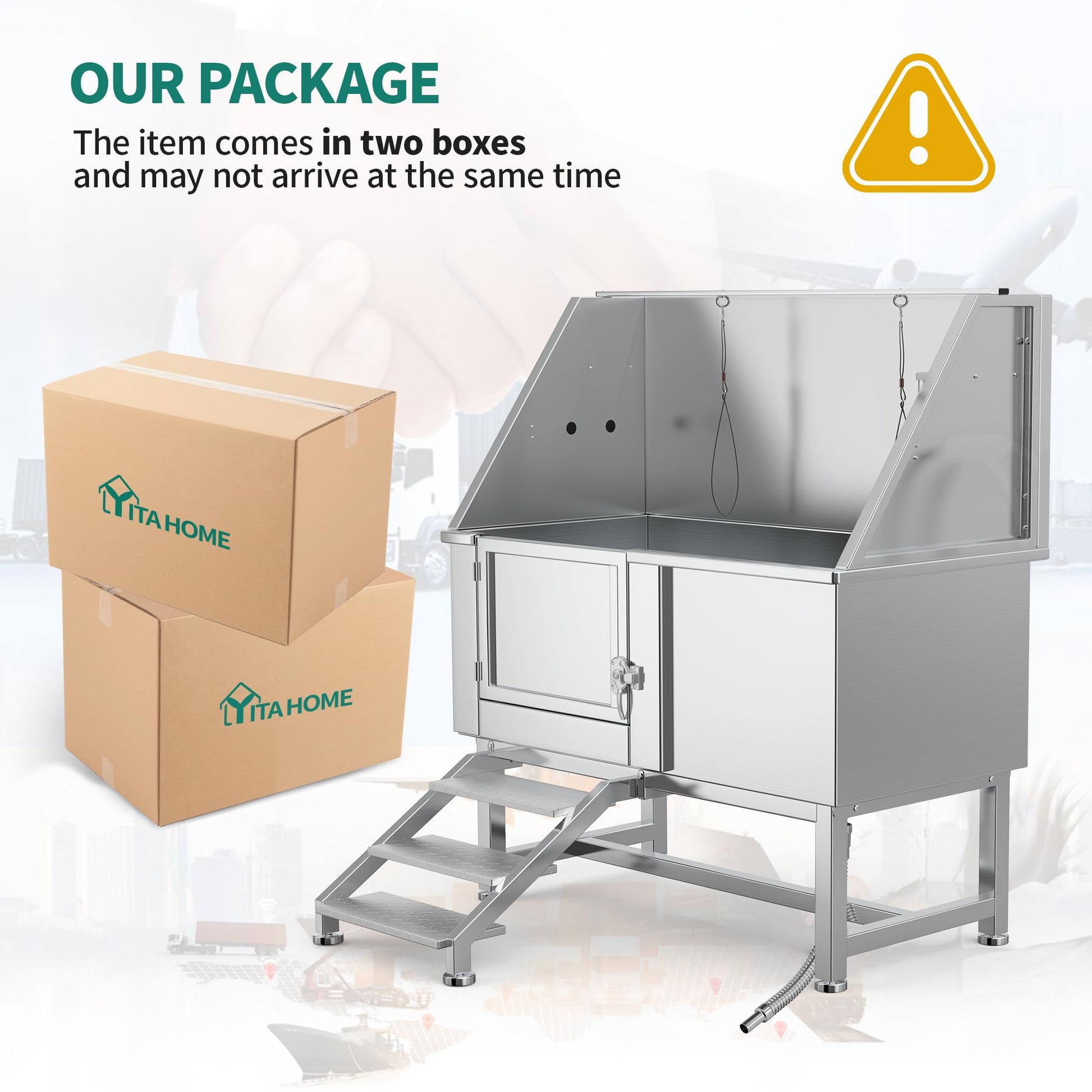 - Superior Construction: YITAHOME professional dog bathtub's body boasts a 304 stainless steel with a load capacity of 330 lbs; It resists deformation and rust, ensuring easy cleaning and lasting durability; The fully welded one-piece design prevents water leakage and allows easy installation