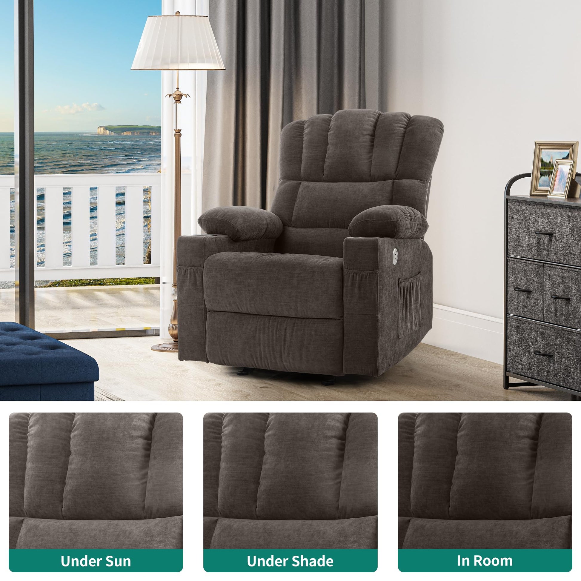 - USB Charging, Cup Holders & Pockets: Features 2 USB ports for device charging, 2 cup holders for drinks, and side pockets for phones, magazines, and remotes, ensuring convenience and accessibility