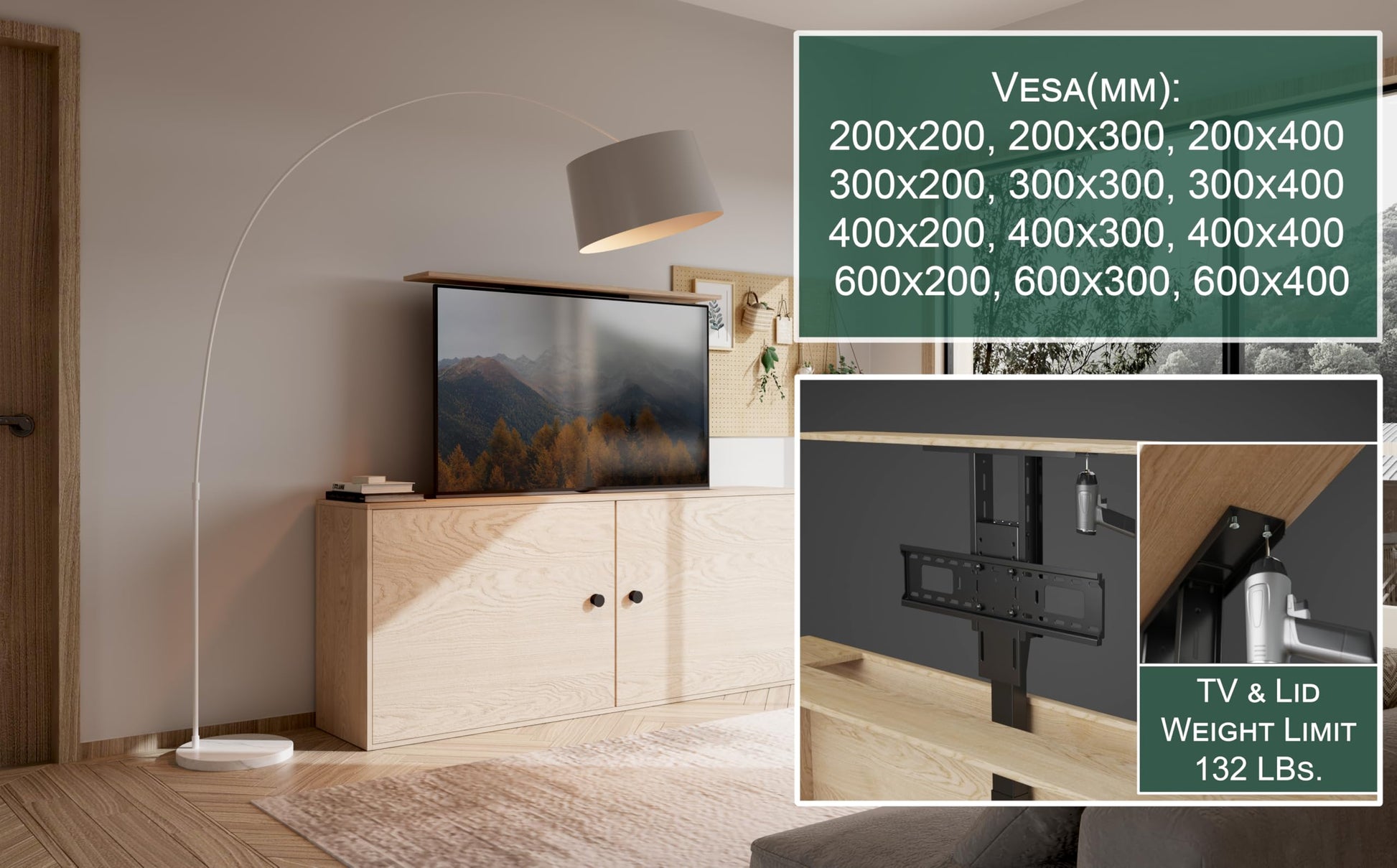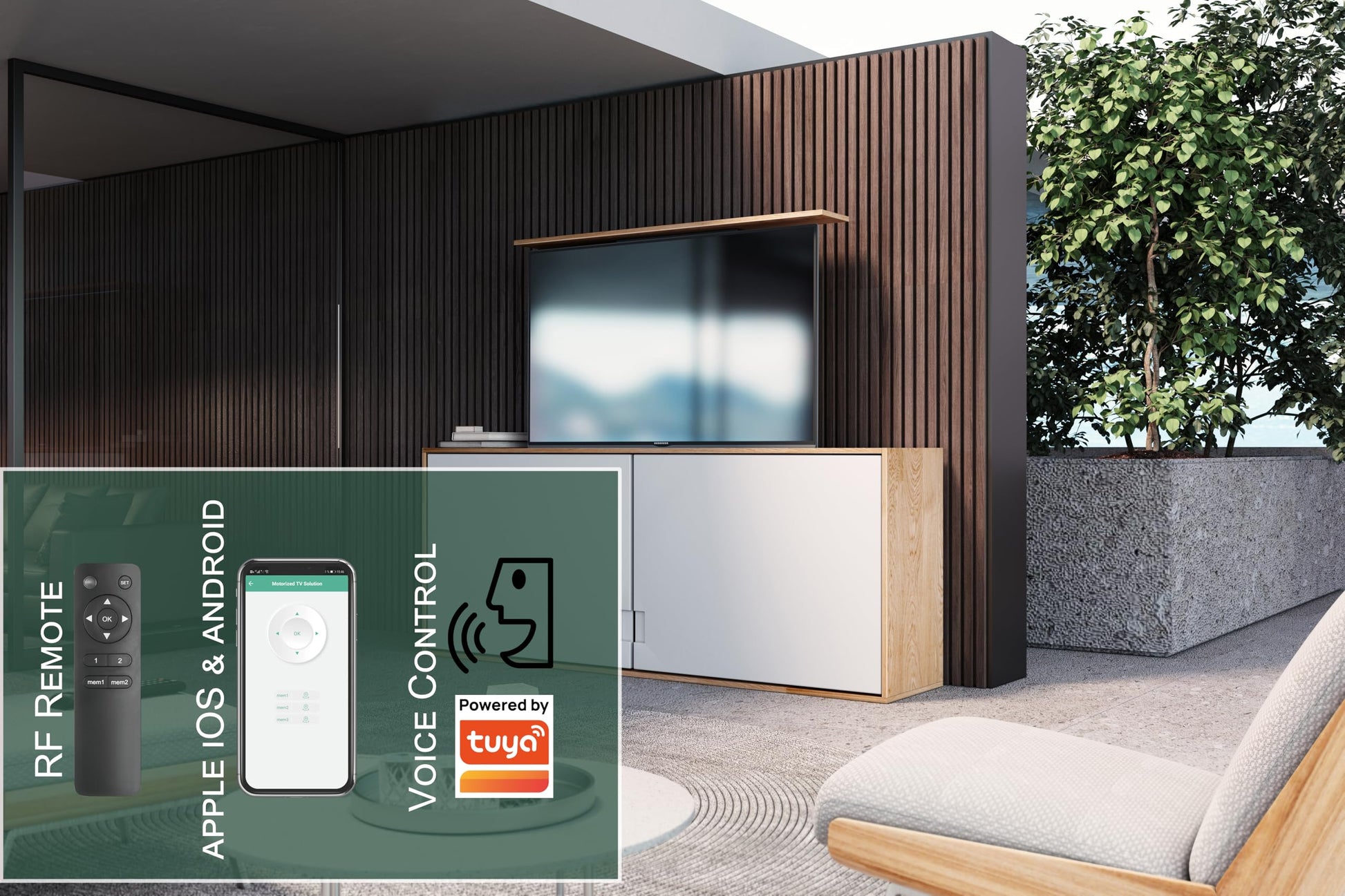 ynVISION.DESIGN Motorized TV Lift Mount for 37"-77" TV's | Vertical Lift Motor TV Stand with RF Remote and Smart Phone Control via WiFi