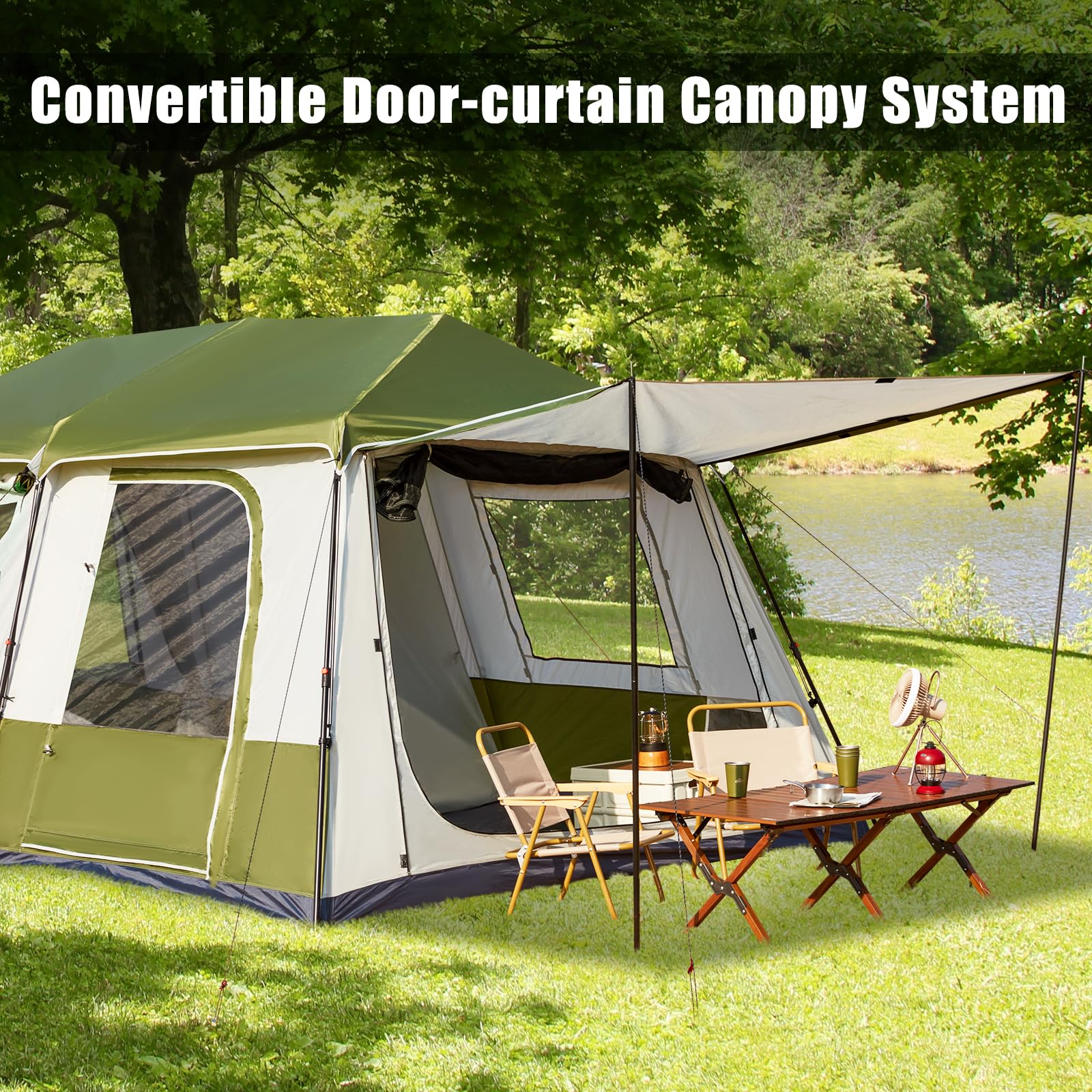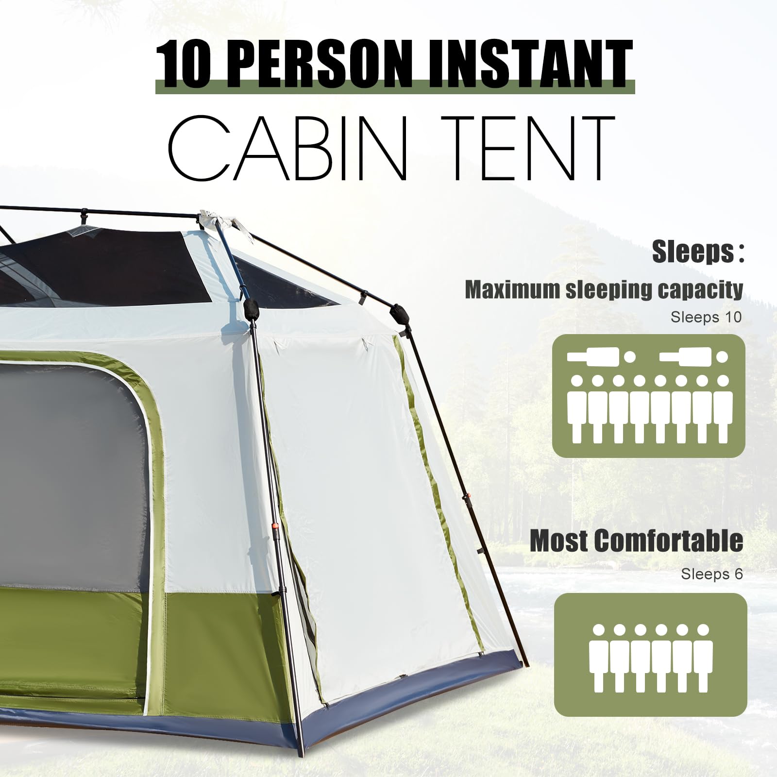 YOLENY Instant Cabin Tent, 4-8 Person Pop-Up Tent for Camping, Spacious Interior-14' x 9', 3000mm Water-Resistant with Rainfly, 2 Windows & 4 Doors, Green