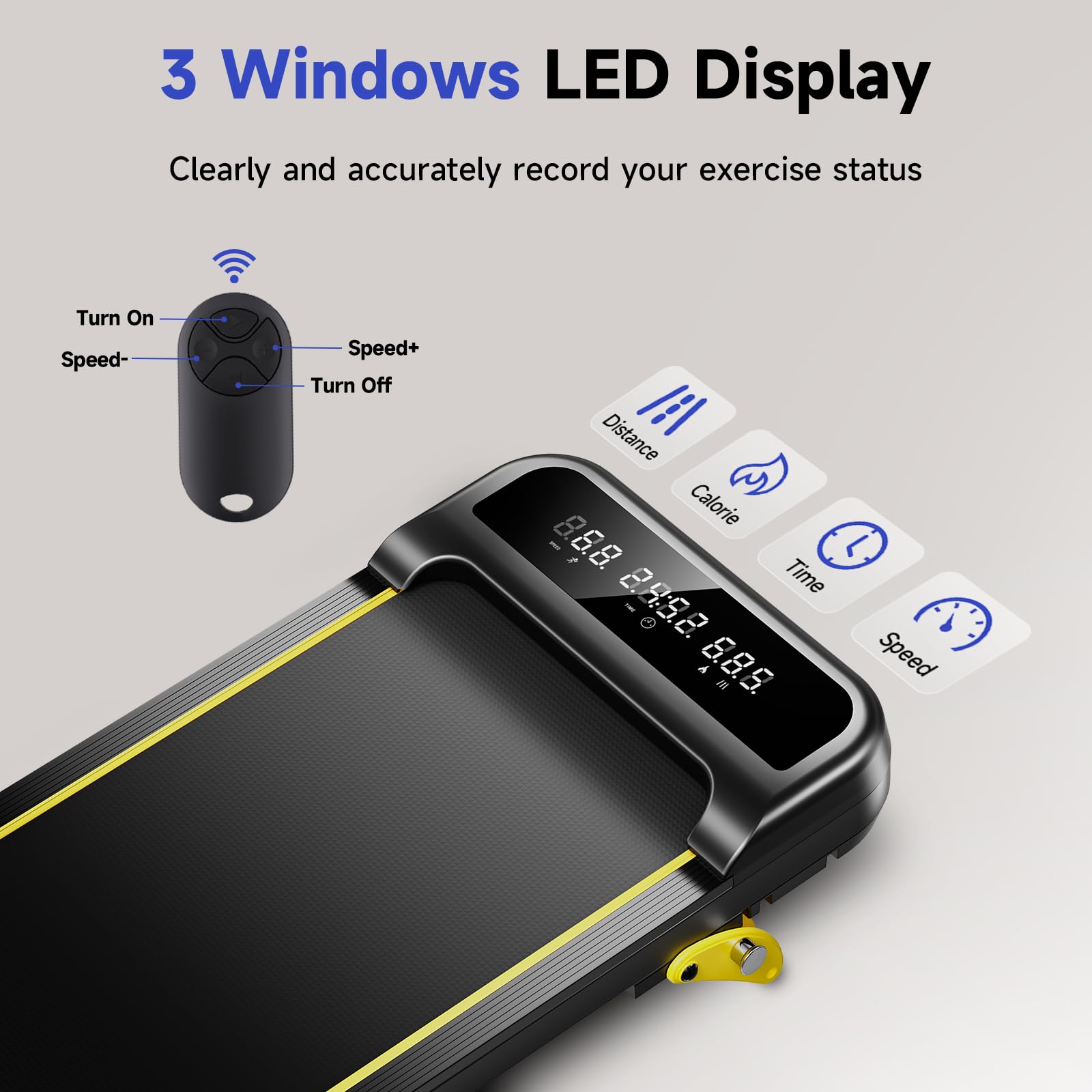 - 【Quiet Walking Pad Under Desk】With a powerful 2.5HP motor and quiet operation under 55 dB, this treadmill up to 300lb capacity.The handrail-free design of the walking pad easily fits under desk, allowing you to walk while working. The under desk treadmill enhance your health and achieve a balanced work-life routine effortlessly.