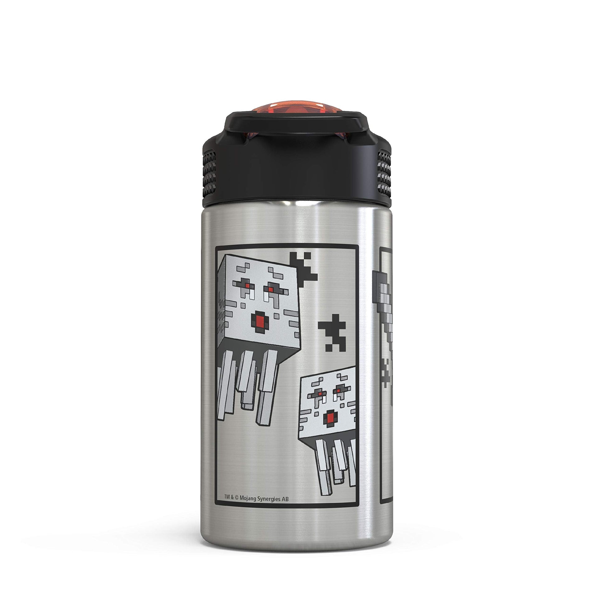 Zak Designs Minecraft - Stainless Steel Water Bottle with One Hand Operation Action Lid and Built-in Carrying Loop, with Straw Spout is Perfect for Kids (15.5 oz, 18/8, BPA-Free)