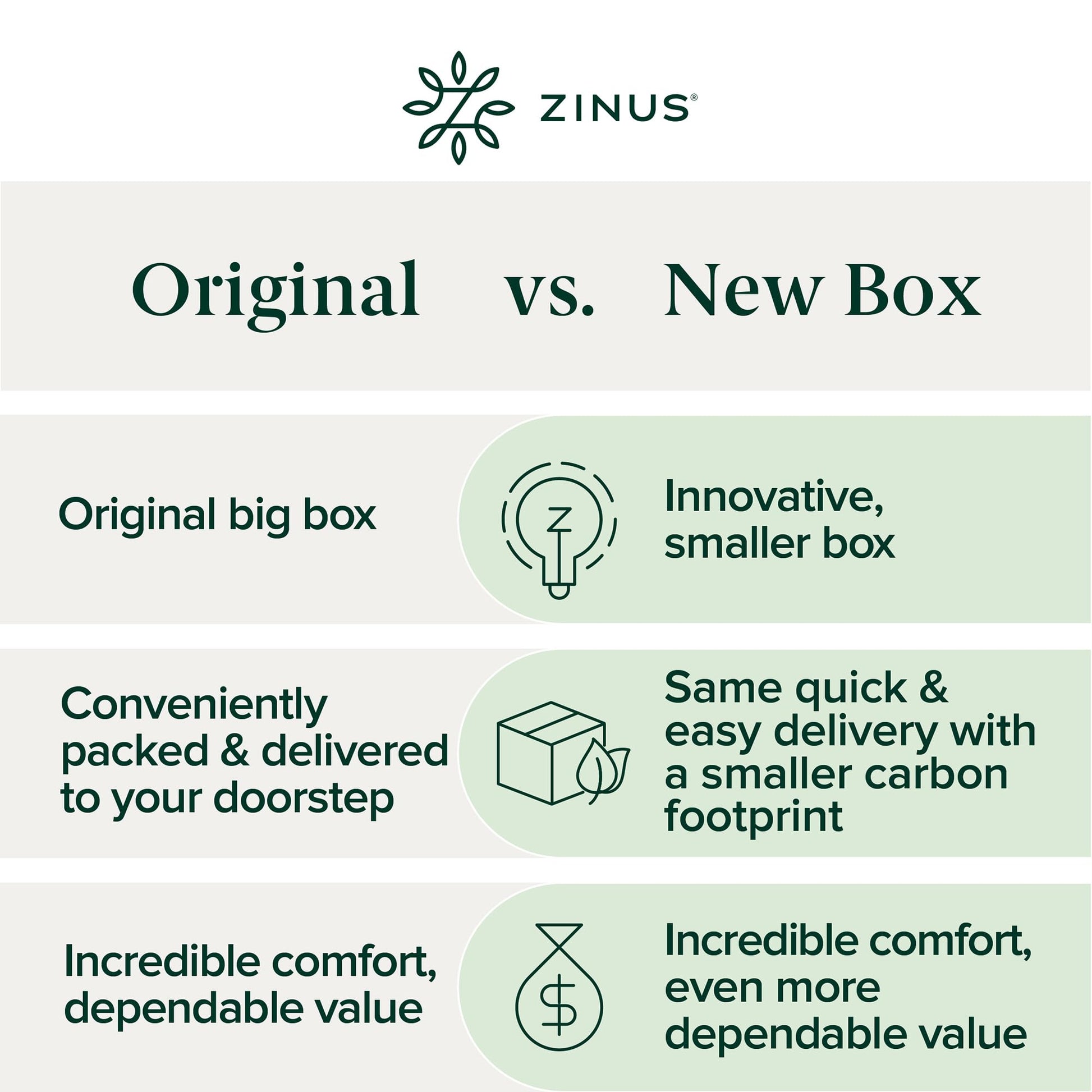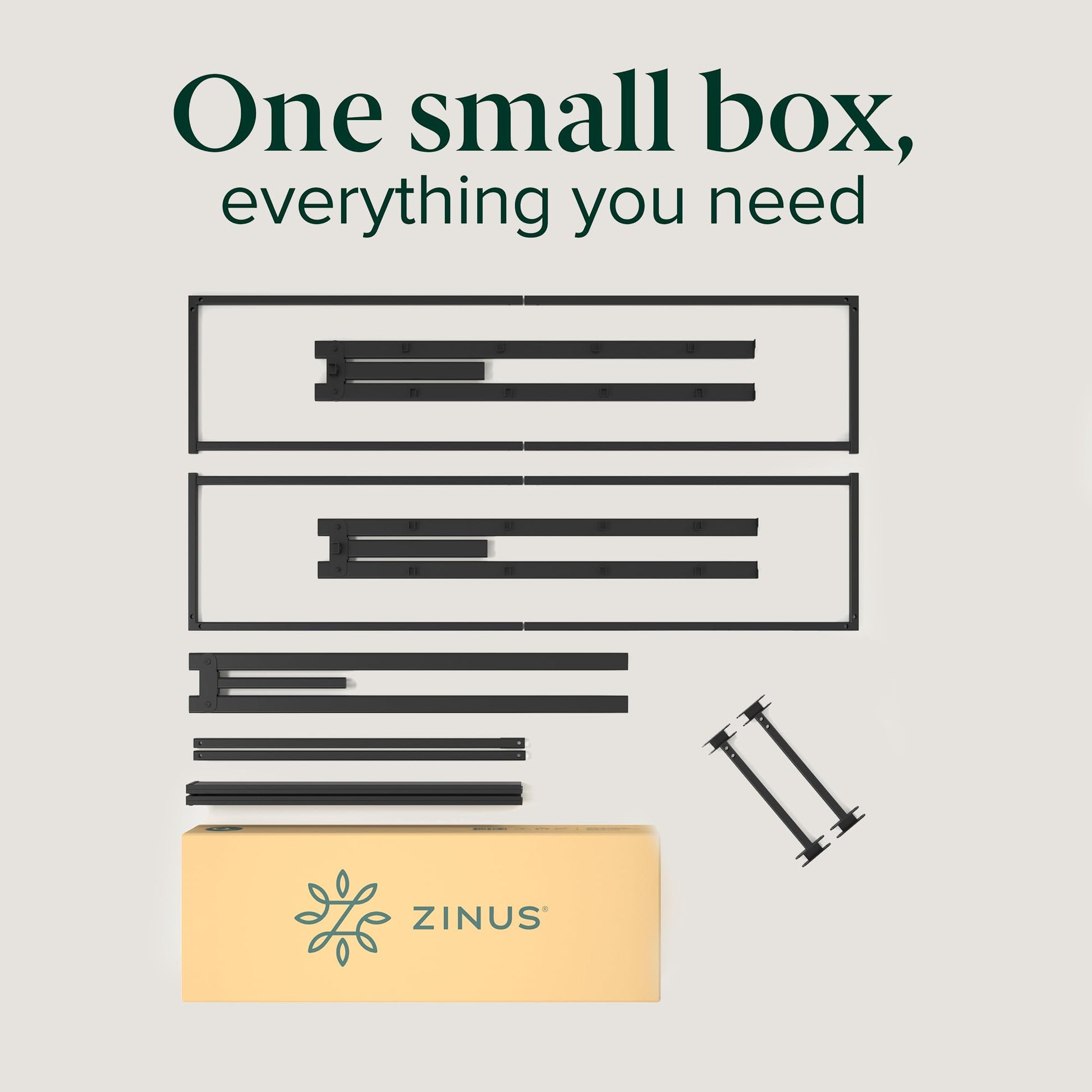 Details: With its contemporary lines and durable build, the Zinus Small Box Lorelei 14-inch Platform Bed is the ideal bedframe for a stylish space, and this new version ships in a smaller WonderBox(TM) for a reduced carbon footprint. Lorelei’s sturdy construction features a durable steel frame with a metal platform that supports your spring, memory foam, or latex mattress without the need for a box spring. The frame’s height provides 12.4 inches of underbed space for added storage. Everything needed for its easy assembly is delivered in our new, convenient smaller box; in about an hour, you will be ready to add your mattress to the frame and enjoy a restful night’s sleep. With its affordable price and 5-year warranty, it’s no wonder that thousands of happy customers have raved about this bedframe!