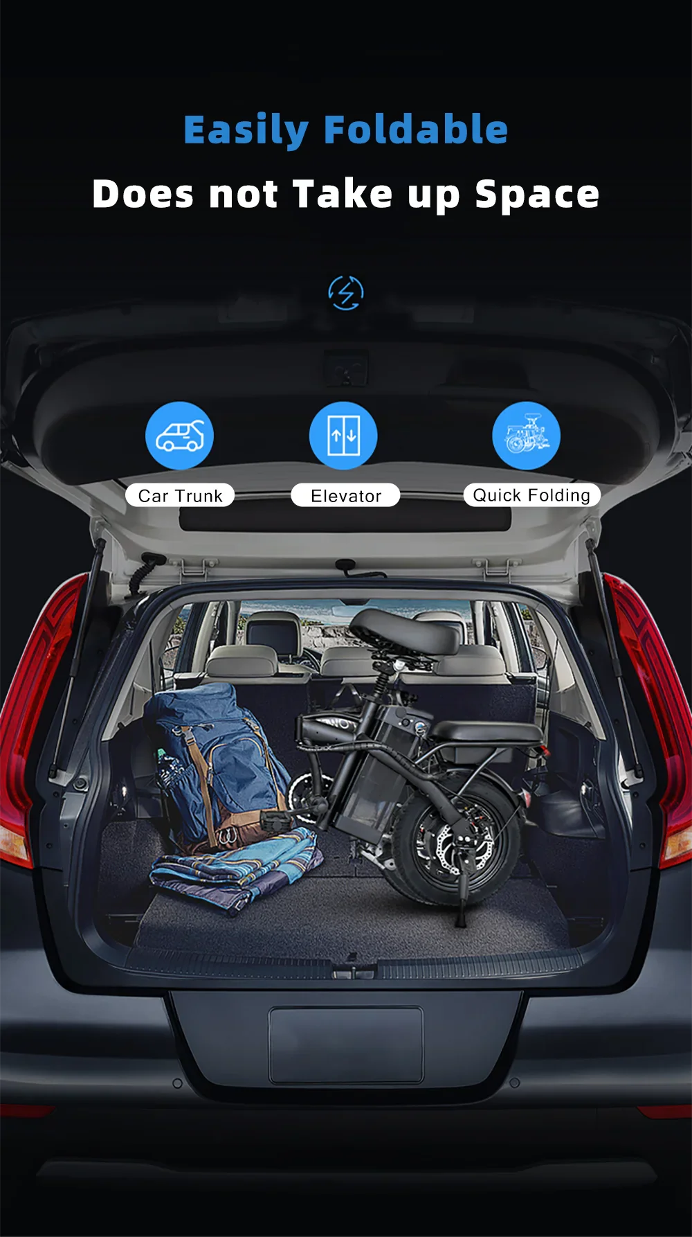 The K100 foldable electric bike features a foldable design, perfect for apartment dwellers and commuters. Easily store and transport this electric bike, whether it's city streets or scenic trails.
